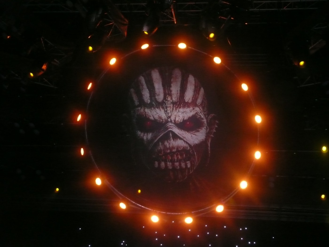 From the new album the lads chose 6 songs, la creme de la creme I can say: If Eternity Should Fail, the extremely catchy Speed of Light, the sad Tears of A Clown, The Red and The Black, with Steve‘s haunting bass guitar, the epic The Book of Souls, during which a huge Mayan Eddie appeared on stage and tried to hack the band members with an axe until Bruce ripped his bloody heart out and threw it in the audience and the 100% Maiden track Death or Glory, where Bruce danced around like a monkey and threw bananas in the audience.