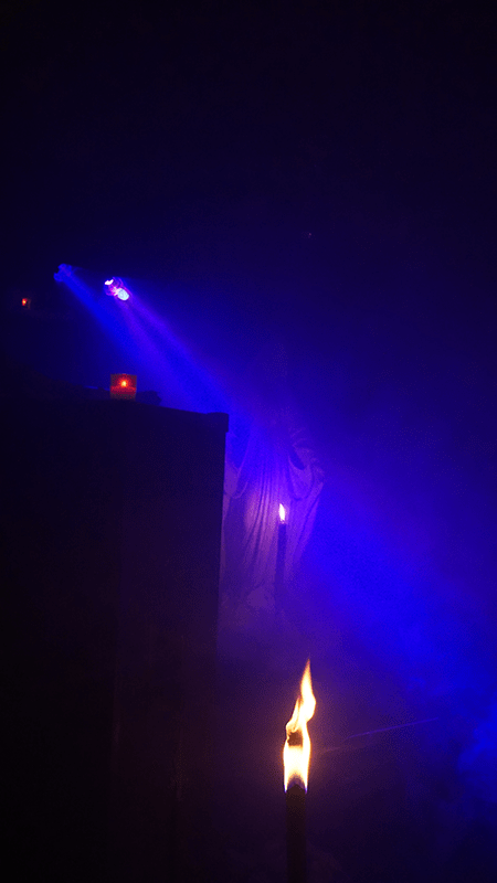 I was really glad Abysmal Grief were able to bring their whole stage props with them, so by the time the stage was completely set up, I could already see the smoke rising from the crypt. Because this was exactly what that room looked like: an abandoned crypt, drowned in almost total darkness and asphyxiated with poisonous fumes.