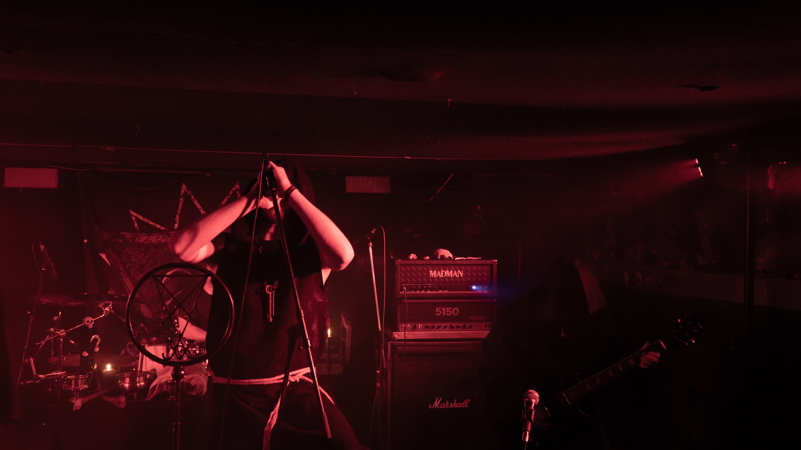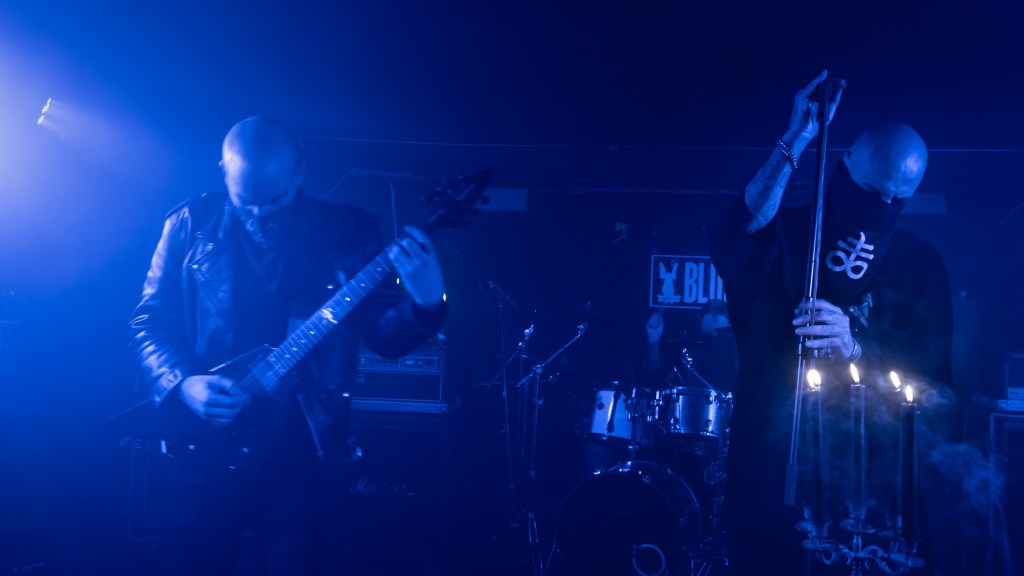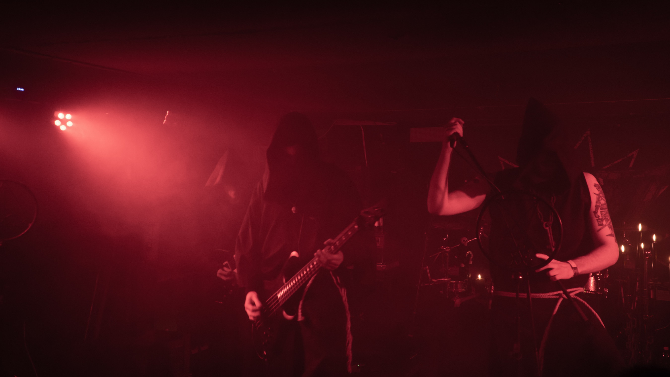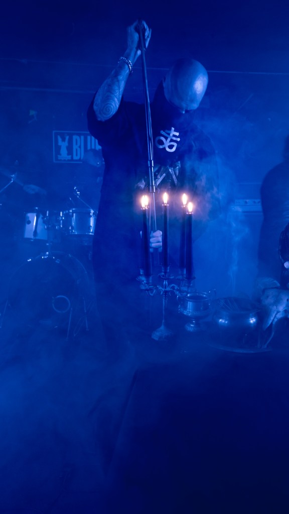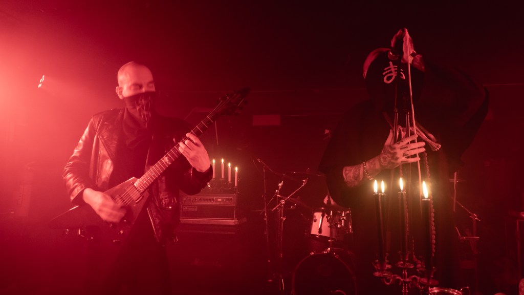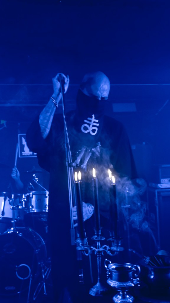 The end of the festival was fast approaching and that meant only thing: Acherontas was about to take the stage. Over the years I’ve always had a love/hate relationship with this band (that usually happens when the band’s discography is very rich) but I never had the chance to see them live. I came very close to do it in 2017 during the Rites of the Black Mass in Bucharest, but fate decided otherwise. Now, 7 years later I was again given the opportunity to see them live so this time I went to the first row to absorb it all from up close. This show had also a special meaning for the Inner Awakening Circle as some time ago, one of its members – Ágost (Lidérc/Niedergang) – joined The Drakonian Coven as a live guitarist and this was his first time playing with them, in front of the home crowd. What a night! After a quick soundcheck the 4 musicians, faces covered in the pure Acherontas tradition, started their downward journey on the left hand path. As they mentioned a few days prior to the festival, their set list was to be quite special and they were not wrong at all. The band played songs from their most recent works (“Sorcery and the Apeiron/Faustian Echoes“, “The Offering of Hemlock“/Psychic Death” and “Hecate/Malocchio“), before going back to the old releases and resurrect tracks like “Blood Current Illumination/Amenti“, “Legacy of Tiamat/Theosis” or “Conjuration of the Five Negatives/Theosis“. The night ended in blazing fires with the Stutthof era track “Wampyric Metamorphosis“, a song I always loved and hoped to see live. The show was intense and very visual from start to finish (altar, bones, candles, incense and tons of smoke), with an enthusiastic crowd who responded well to V.Priest‘s instigations, thus creating an invisible thread between the band and the audience. I absolutely loved the performance, the visuals, the dedication and the skills of all those musicians, they have created a truly memorable night. I almost forgot to mention how good the band sounded without a bass guitar player on stage. The 2 guitars were in permanent connection during the show and their aggressive (and sometimes melodic) tunes struck home right in the soul.