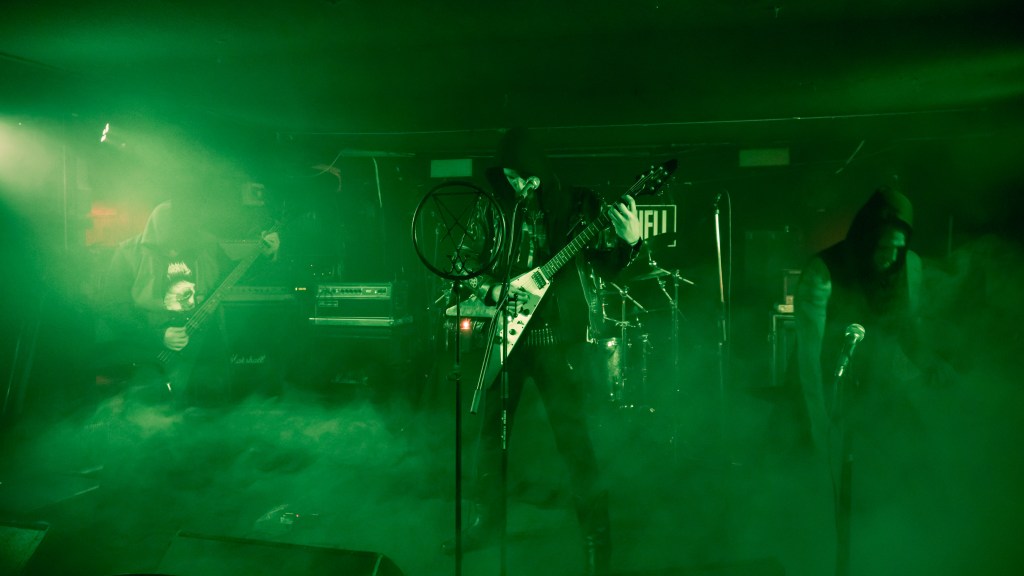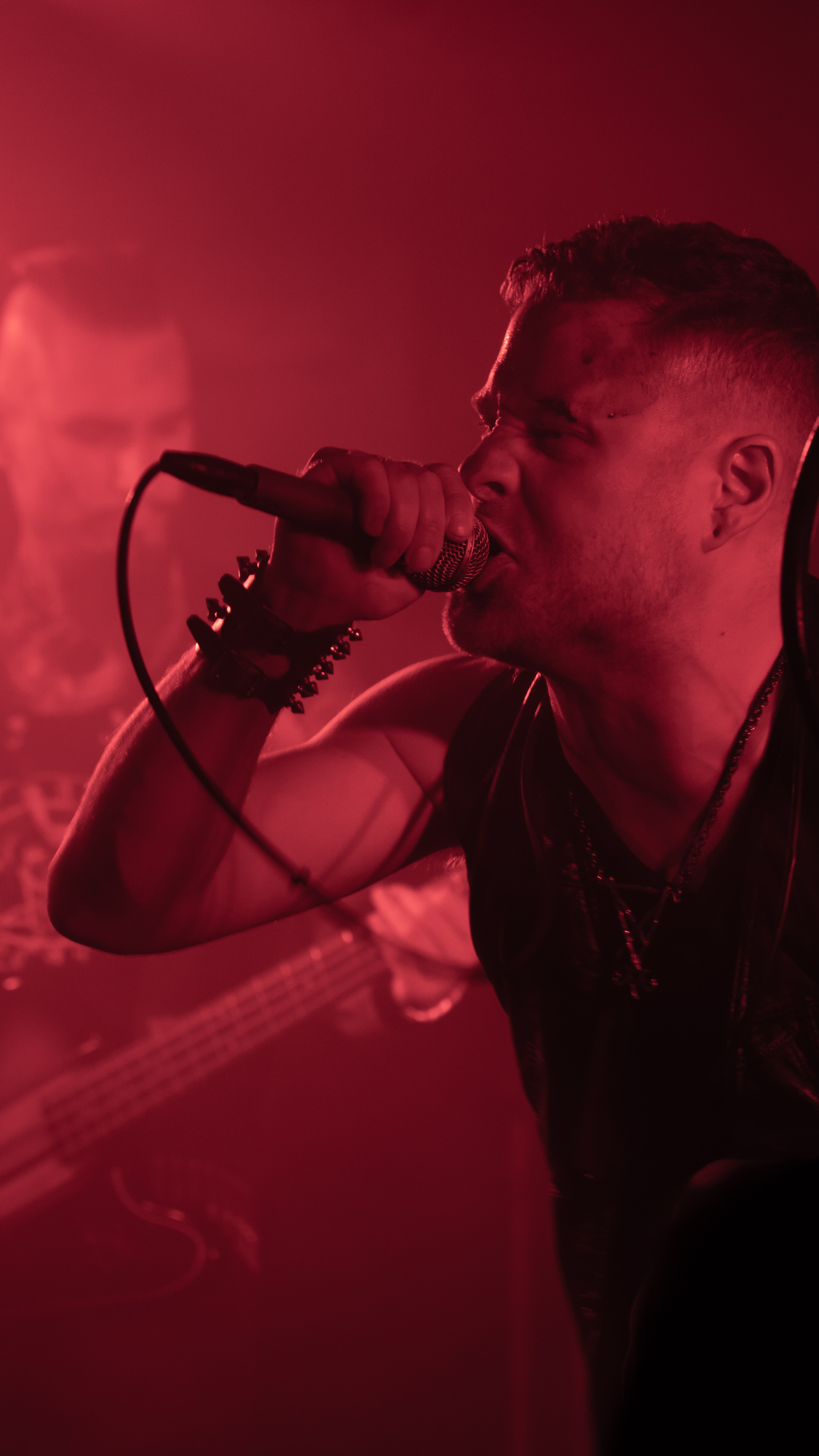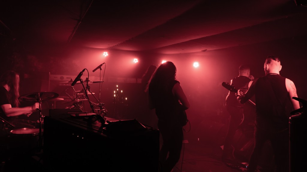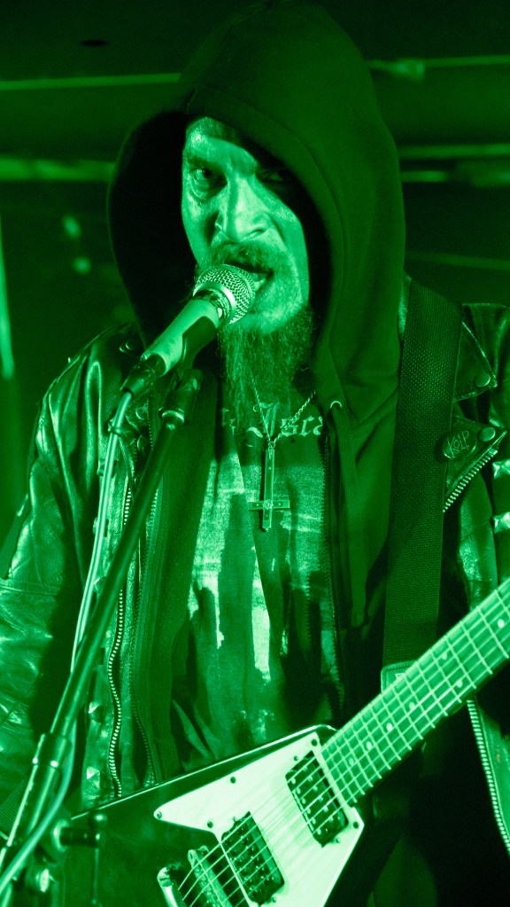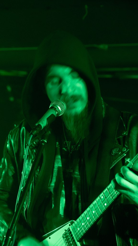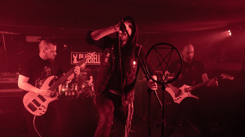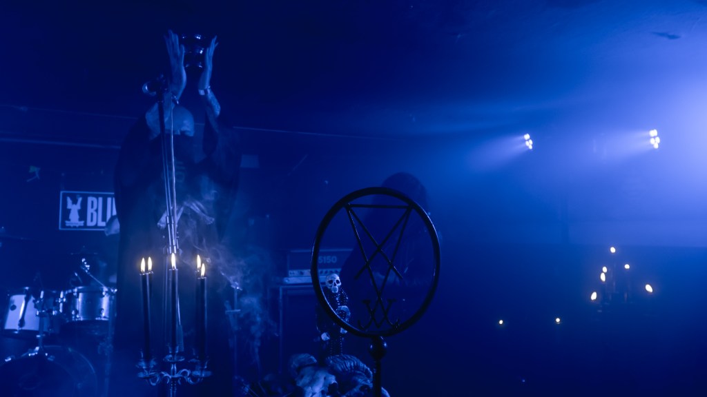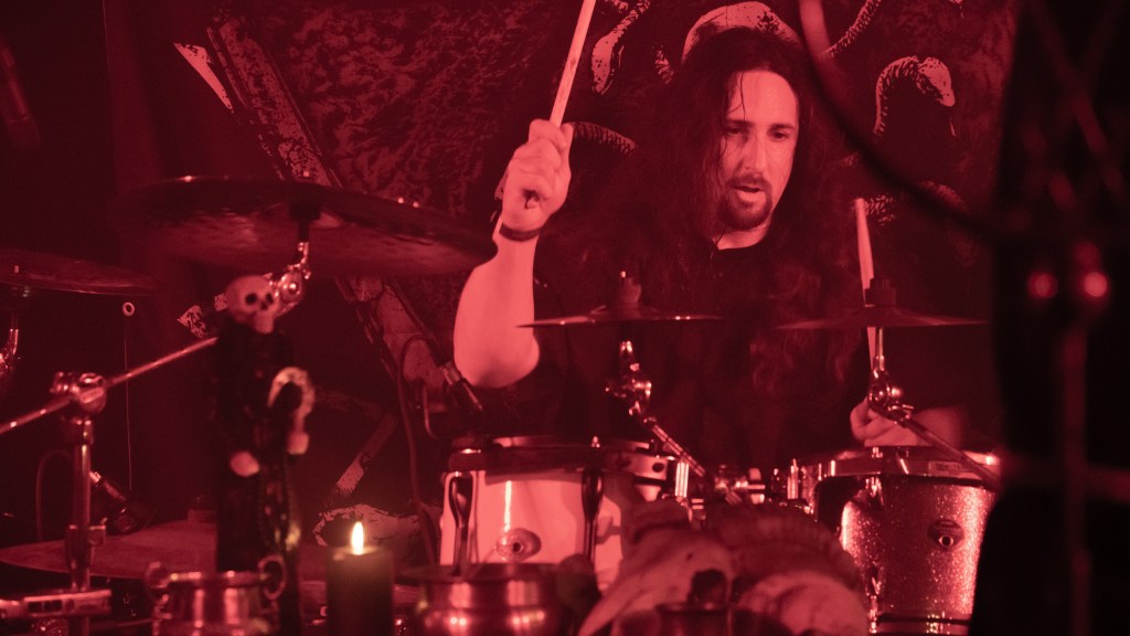 The end of the festival was fast approaching and that meant only thing: Acherontas was about to take the stage. Over the years I’ve always had a love/hate relationship with this band (that usually happens when the band’s discography is very rich) but I never had the chance to see them live. I came very close to do it in 2017 during the Rites of the Black Mass in Bucharest, but fate decided otherwise. Now, 7 years later I was again given the opportunity to see them live so this time I went to the first row to absorb it all from up close. This show had also a special meaning for the Inner Awakening Circle as some time ago, one of its members – Ágost (Lidérc/Niedergang) – joined The Drakonian Coven as a live guitarist and this was his first time playing with them, in front of the home crowd. What a night! After a quick soundcheck the 4 musicians, faces covered in the pure Acherontas tradition, started their downward journey on the left hand path. As they mentioned a few days prior to the festival, their set list was to be quite special and they were not wrong at all. The band played songs from their most recent works (“Sorcery and the Apeiron/Faustian Echoes“, “The Offering of Hemlock“/Psychic Death” and “Hecate/Malocchio“), before going back to the old releases and resurrect tracks like “Blood Current Illumination/Amenti“, “Legacy of Tiamat/Theosis” or “Conjuration of the Five Negatives/Theosis“. The night ended in blazing fires with the Stutthof era track “Wampyric Metamorphosis“, a song I always loved and hoped to see live. The show was intense and very visual from start to finish (altar, bones, candles, incense and tons of smoke), with an enthusiastic crowd who responded well to V.Priest‘s instigations, thus creating an invisible thread between the band and the audience. I absolutely loved the performance, the visuals, the dedication and the skills of all those musicians, they have created a truly memorable night. I almost forgot to mention how good the band sounded without a bass guitar player on stage. The 2 guitars were in permanent connection during the show and their aggressive (and sometimes melodic) tunes struck home right in the soul.