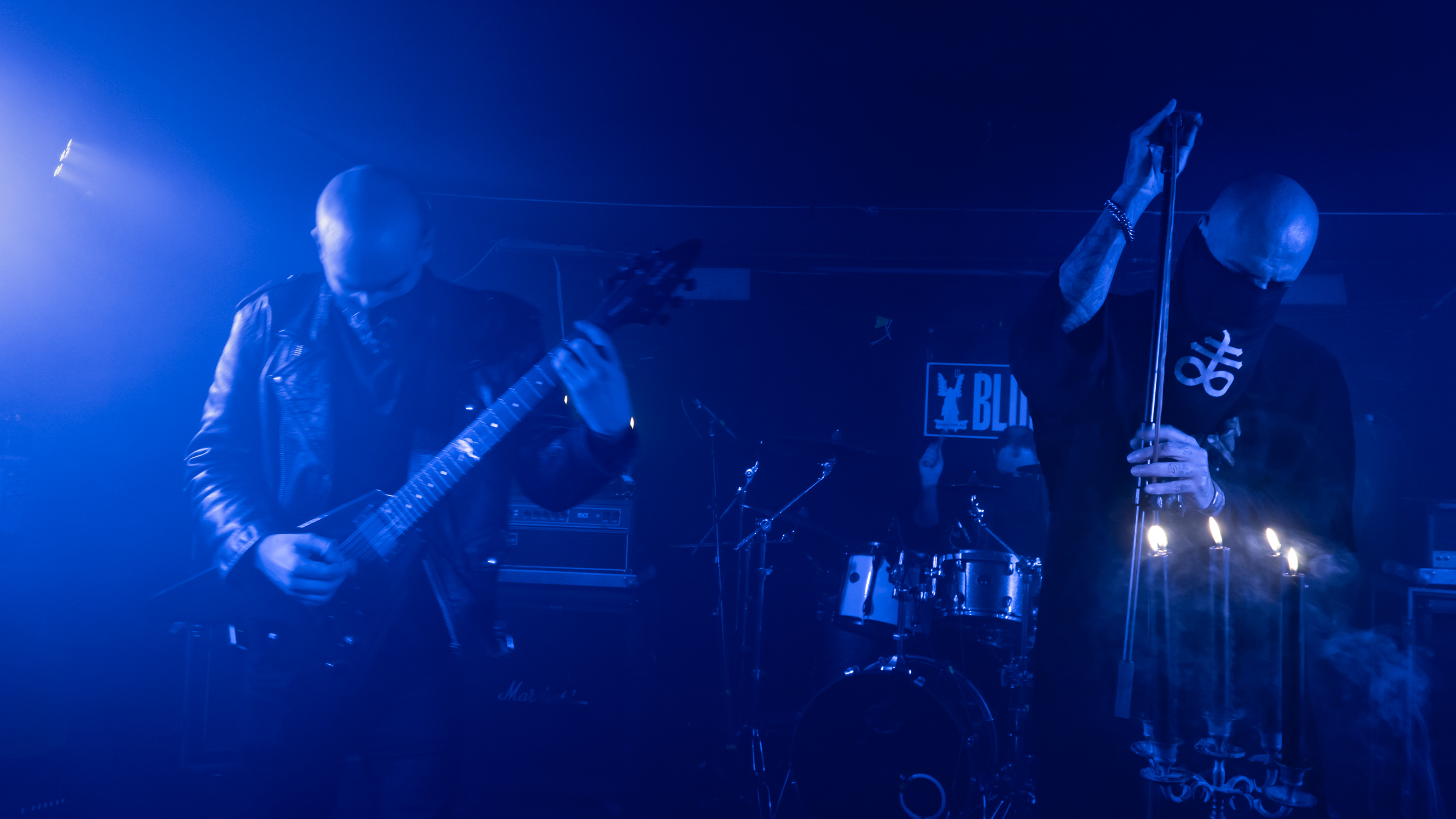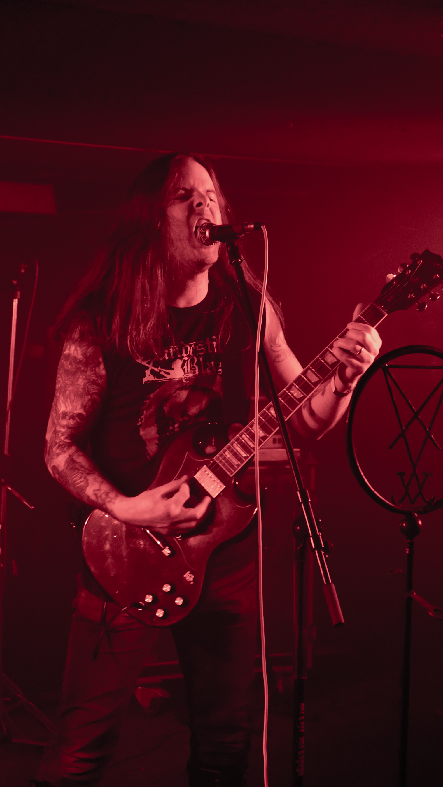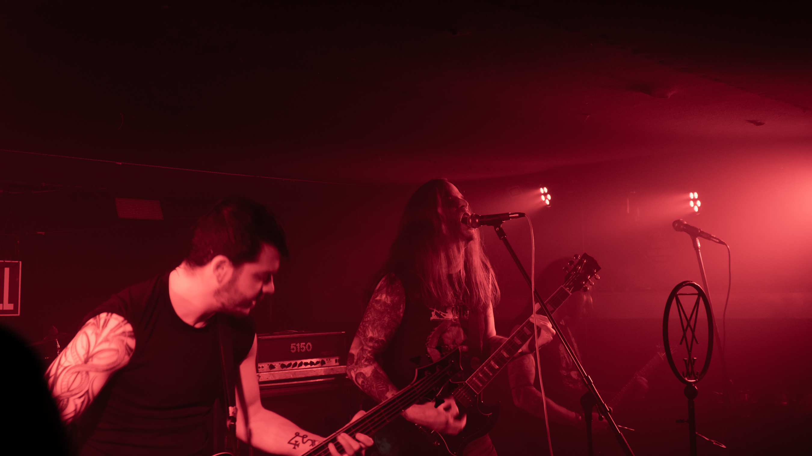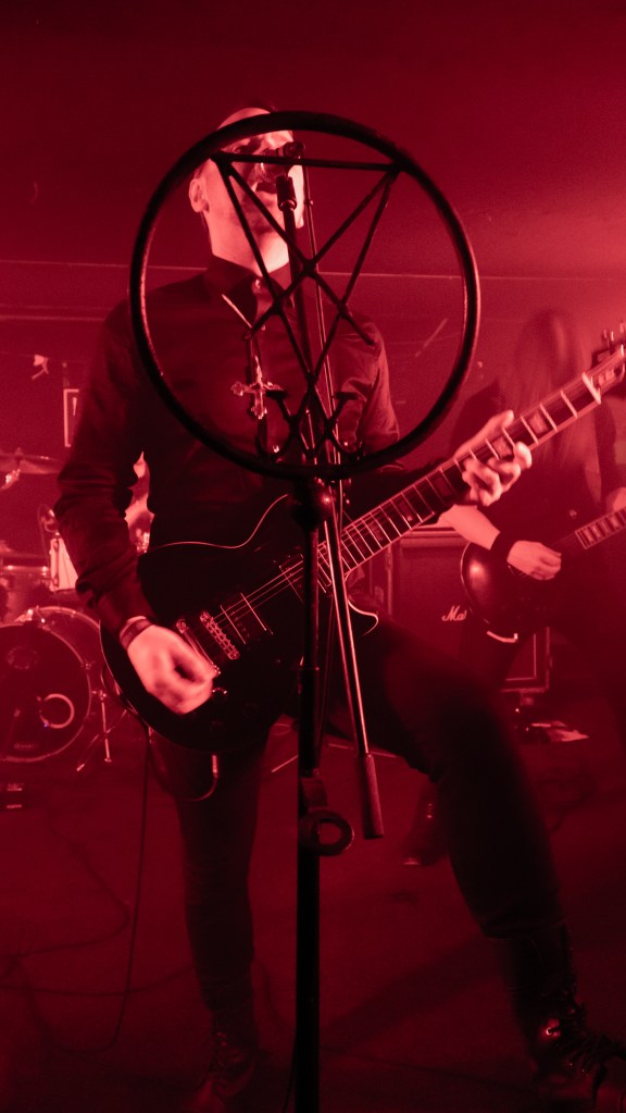 After Barshasketh, it was time to leave the speed behind and embrace the oppressive Scandinavian darkness invoked by Mortuus . I missed them when they played at the 2018 festival edition so now I had no excuse to skip on their performance. Mortuus are one of those bands who since their inception have indeed practiced what they preached. The duo JK and MH have always kept the band in a somehow reclusive state so any Mortuus live apparition is considered a real event in itself. With that in mind I took my place in the first row and waited patiently for their performance. During their short sound check I noticed that the live bassist for this evening was Vlad (Valkyrja, ex-Onskapt etc) , a fellow Romanian who moved to Sweden a long time ago. Once everything was set, the band entered the stage and for almost 1 hour the purest darkness descended upon the audience. The setlist was not very long, only 6 tracks (including “Nyctophilia” from the split 7″ with Serpent Noir), but very intense and extremely dark. Besides the big inverted cross which hung from Johannes‘s neck, the band didn’t use other (occult) accessories, the slow, mid tempo music and the suffocating atmosphere were more than enough to sink you into the sheer darkness . Sometimes less is more and Mortuus seems to know it very well. I embraced every moment of their performance and I was extremely happy I could hear a track (“Penetrations of Darkness“) from one of my favorite black metal albums ever recorded, “De Contemplanda Morte“. One of the highlights of the festival, for sure!