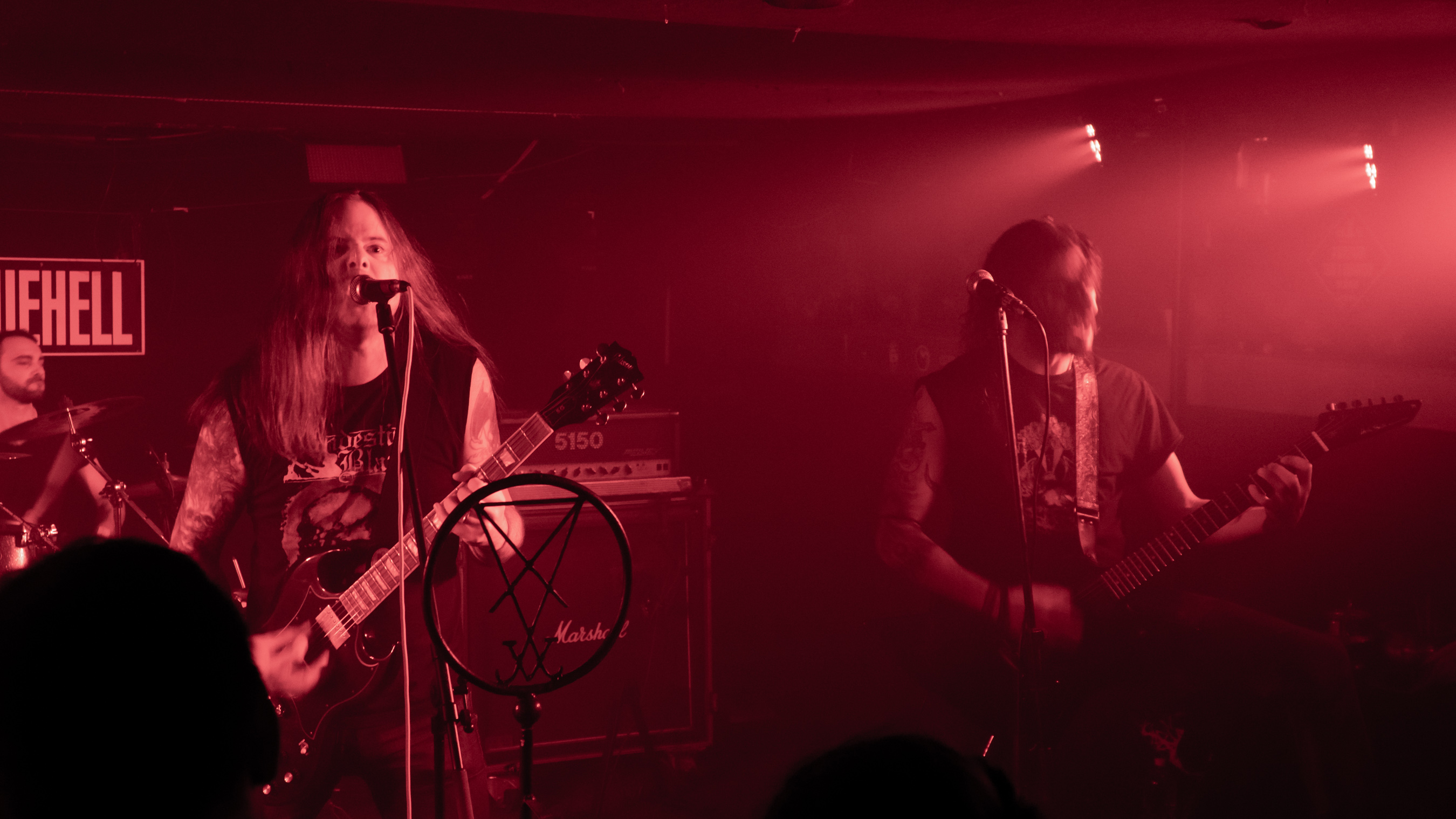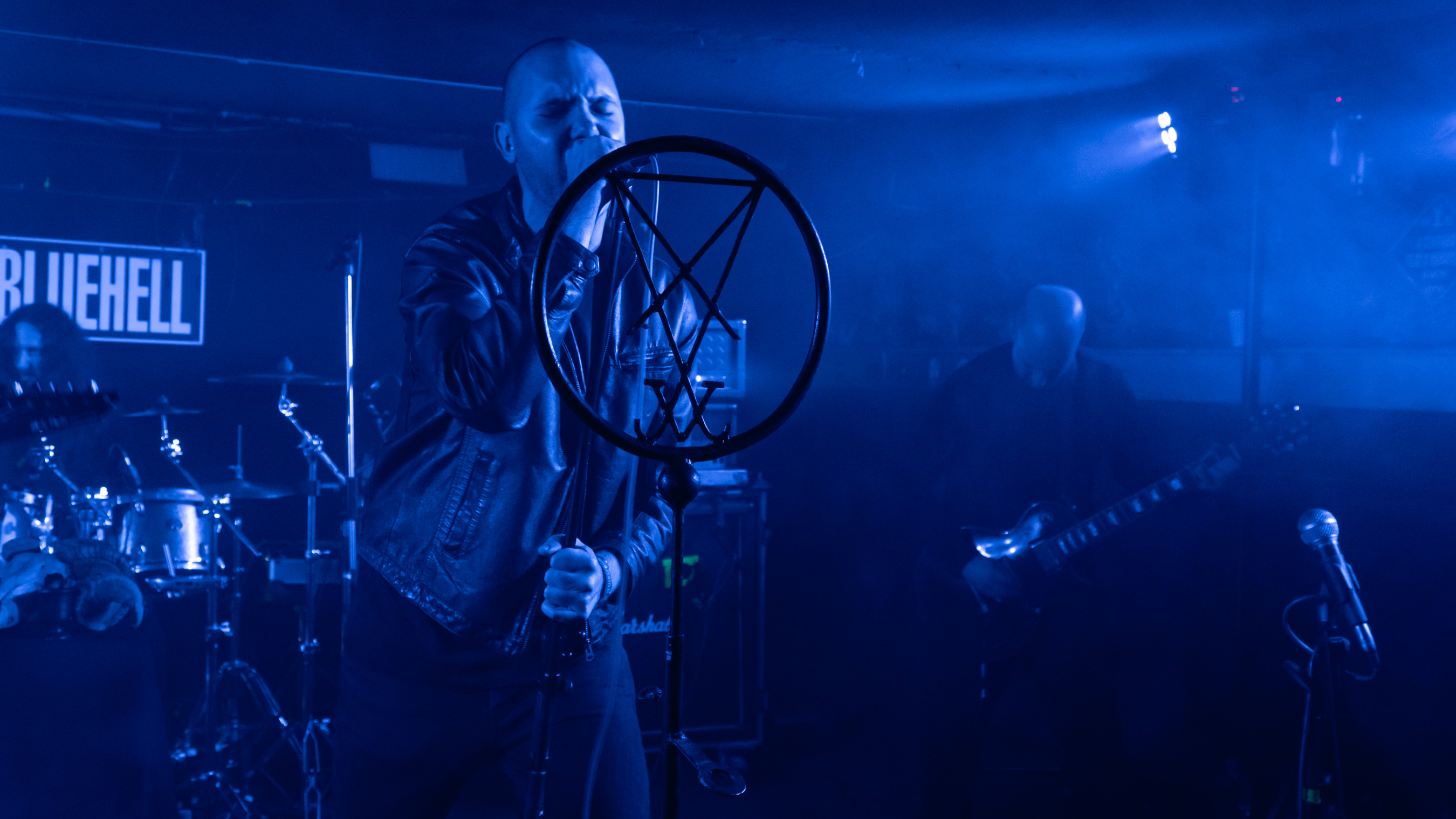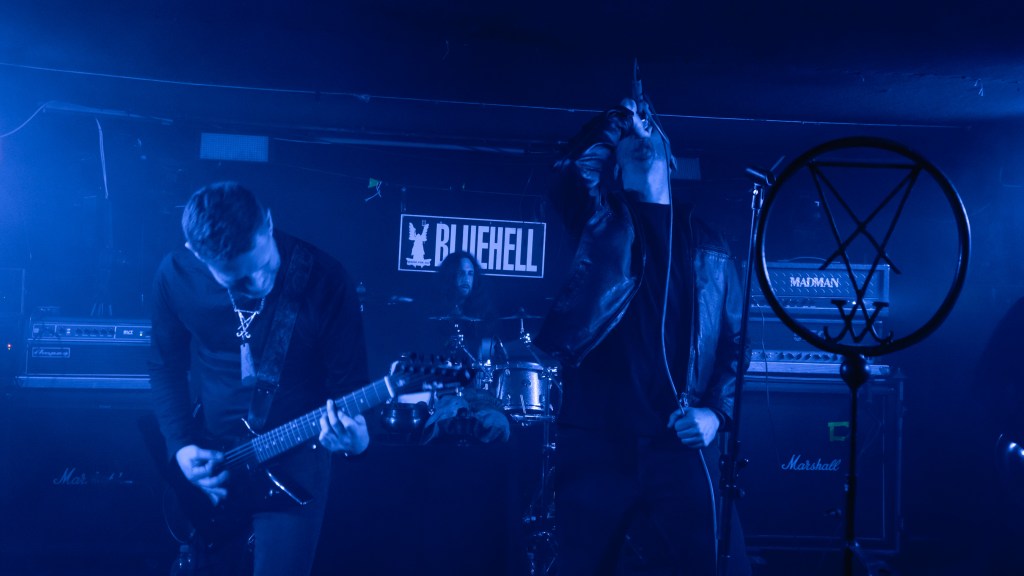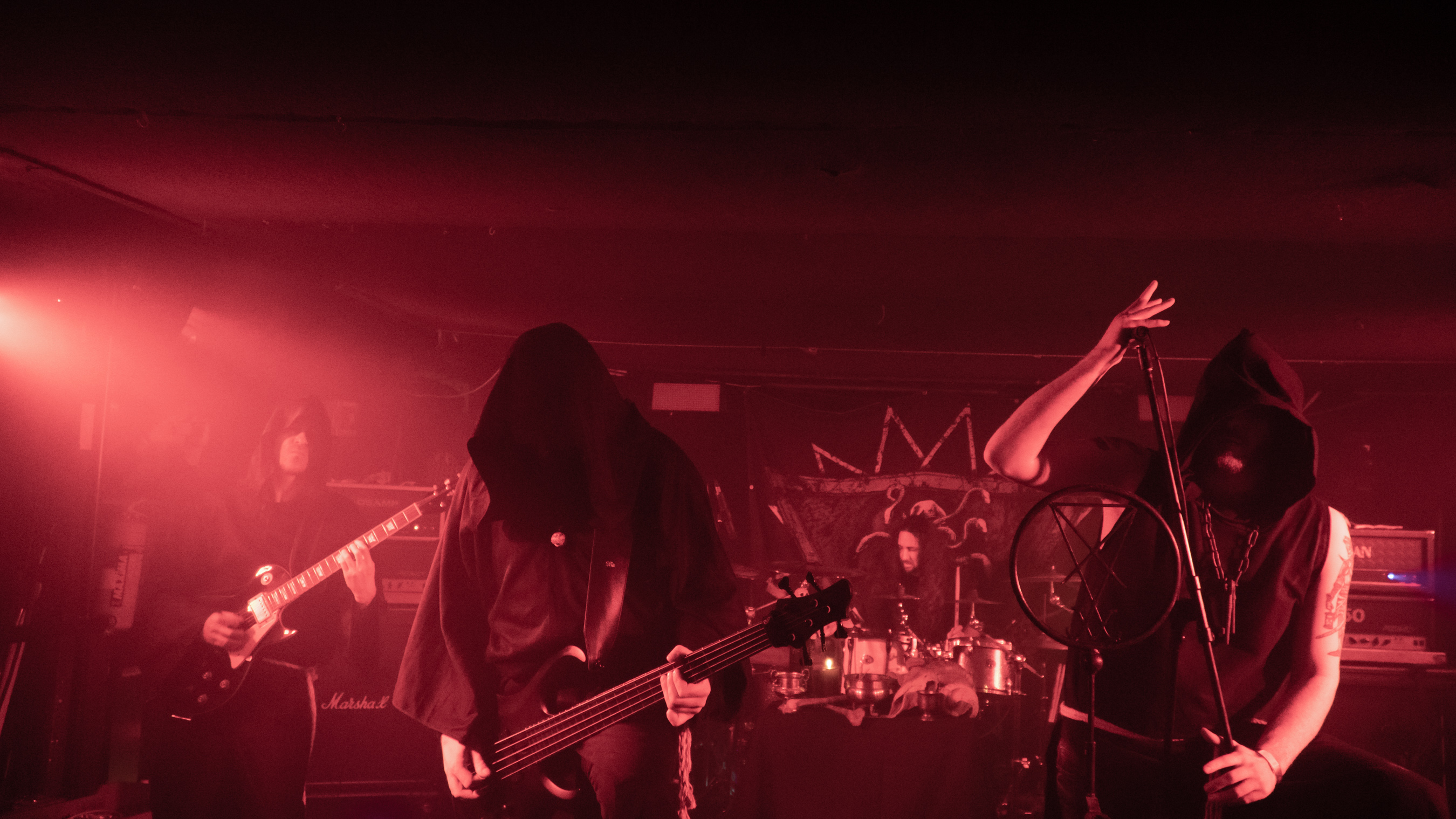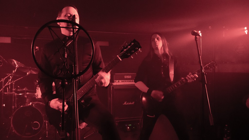 After Barshasketh, it was time to leave the speed behind and embrace the oppressive Scandinavian darkness invoked by Mortuus . I missed them when they played at the 2018 festival edition so now I had no excuse to skip on their performance. Mortuus are one of those bands who since their inception have indeed practiced what they preached. The duo JK and MH have always kept the band in a somehow reclusive state so any Mortuus live apparition is considered a real event in itself. With that in mind I took my place in the first row and waited patiently for their performance. During their short sound check I noticed that the live bassist for this evening was Vlad (Valkyrja, ex-Onskapt etc) , a fellow Romanian who moved to Sweden a long time ago. Once everything was set, the band entered the stage and for almost 1 hour the purest darkness descended upon the audience. The setlist was not very long, only 6 tracks (including “Nyctophilia” from the split 7″ with Serpent Noir), but very intense and extremely dark. Besides the big inverted cross which hung from Johannes‘s neck, the band didn’t use other (occult) accessories, the slow, mid tempo music and the suffocating atmosphere were more than enough to sink you into the sheer darkness . Sometimes less is more and Mortuus seems to know it very well. I embraced every moment of their performance and I was extremely happy I could hear a track (“Penetrations of Darkness“) from one of my favorite black metal albums ever recorded, “De Contemplanda Morte“. One of the highlights of the festival, for sure!