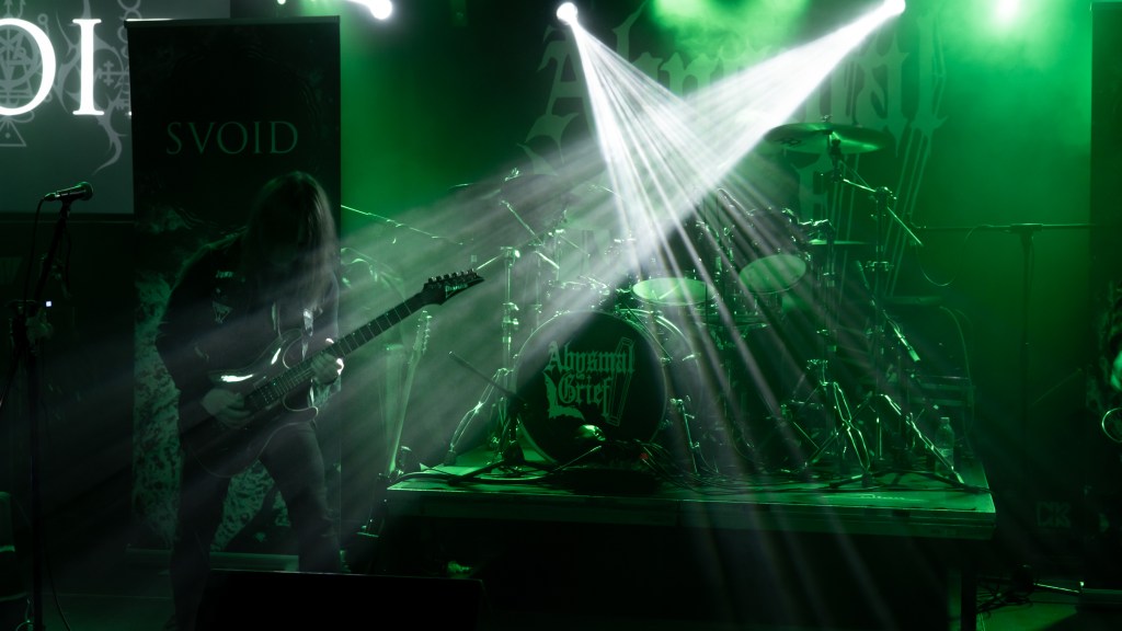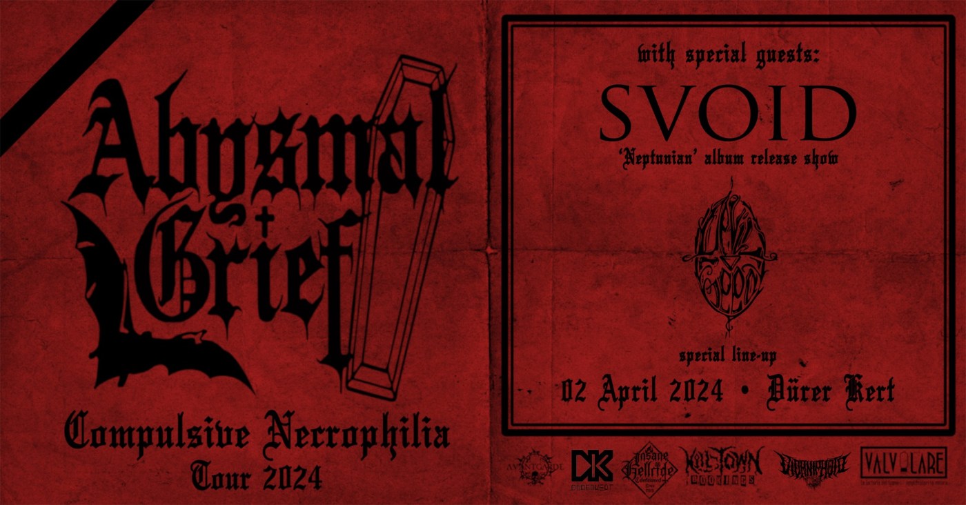 Back in 2016 (seems like in another life, really) I finally got to see SVOID live. At the time, they had just released their sophomore studio album S.V.O.I.D. and were doing a mini tour in Romania supporting the Italian masters of horror Abysmal Grief. 8 years later, on the 2nd of April, Svoid were celebrating the release of their 3rd album, “Neptunian“, and were again opening for Abysmal Grief, this time in Budapest’s Dürer Kert club. The opening act of the evening was the local band Devil Seed, in a gig organized by the enthusiastic maniacs of Insane Hellride Entertainment.