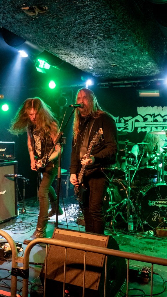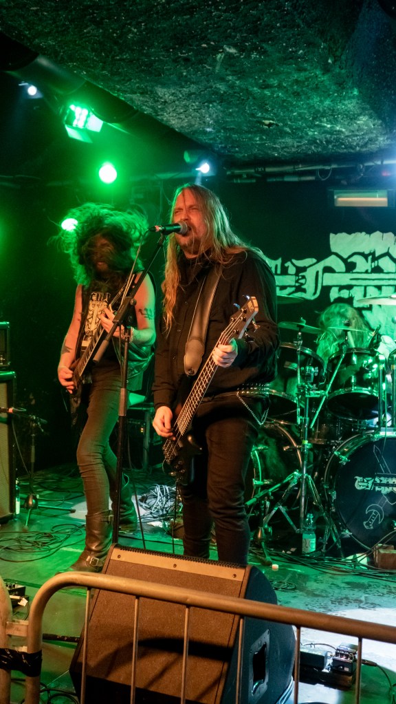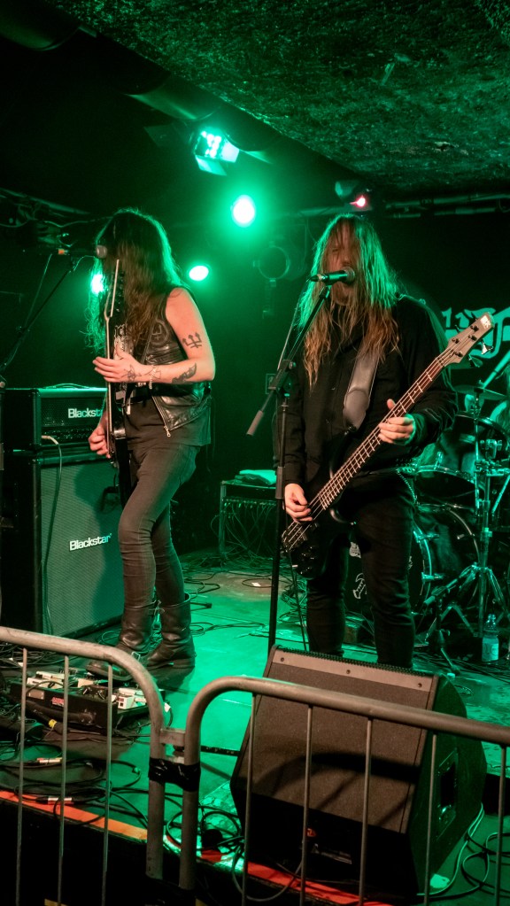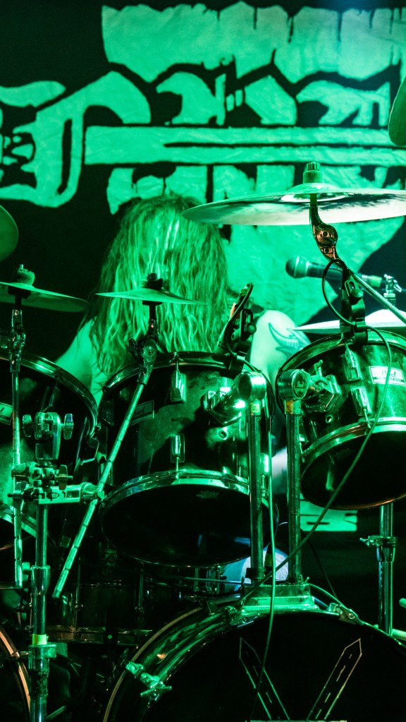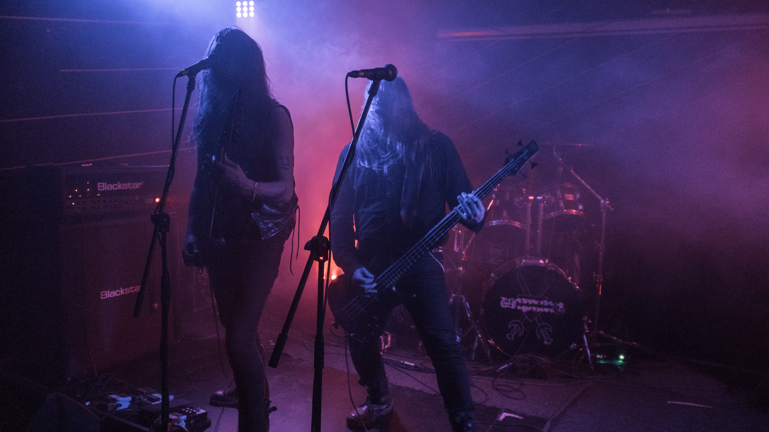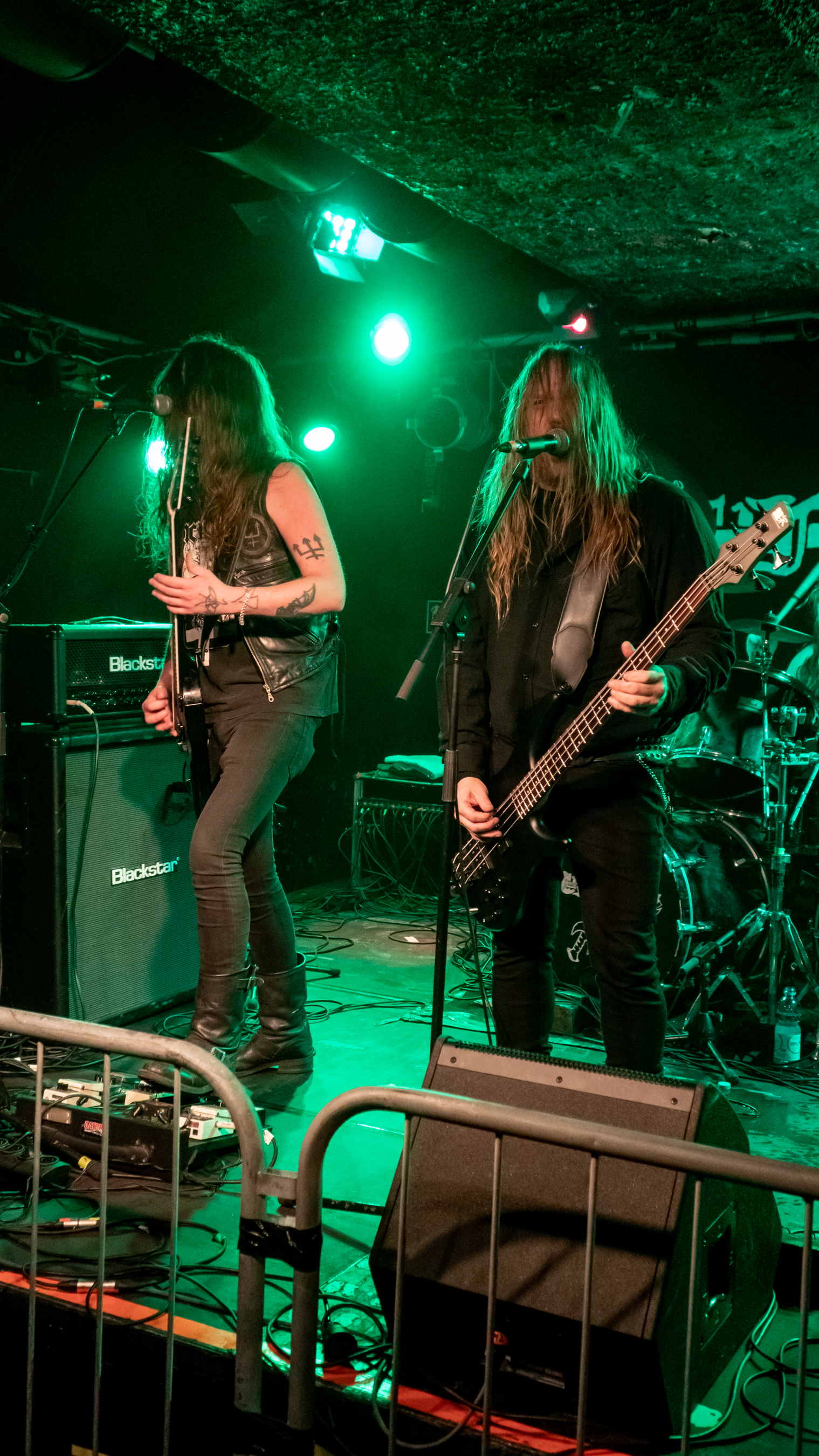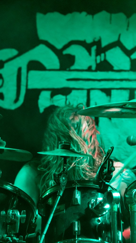 After their short Eastern European tour they did last year, Xalpen enrolled Gia as a permanent member in their ranks, so it was no surprise seeing her again shredding the guitar with that specific look on her face. She is really a great addition to the band, as the 2 guitars complement each other perfectly and bring a much needed heaviness and balance to the Xalpen songs. Behind the drums, hidden in the smoke and fog, Claudio massacred his kit and pounded like a maniac all throughout the show. Unfortunately the sound guy could not solve the sound issue during Xalpen‘s show, so they also had the same buzzing sound I mentioned earlier, but that did not prevent them to play with even more force and vigor. Alvaro and JP make a great duo, their vocals complement each other perfectly in a frightening unison.