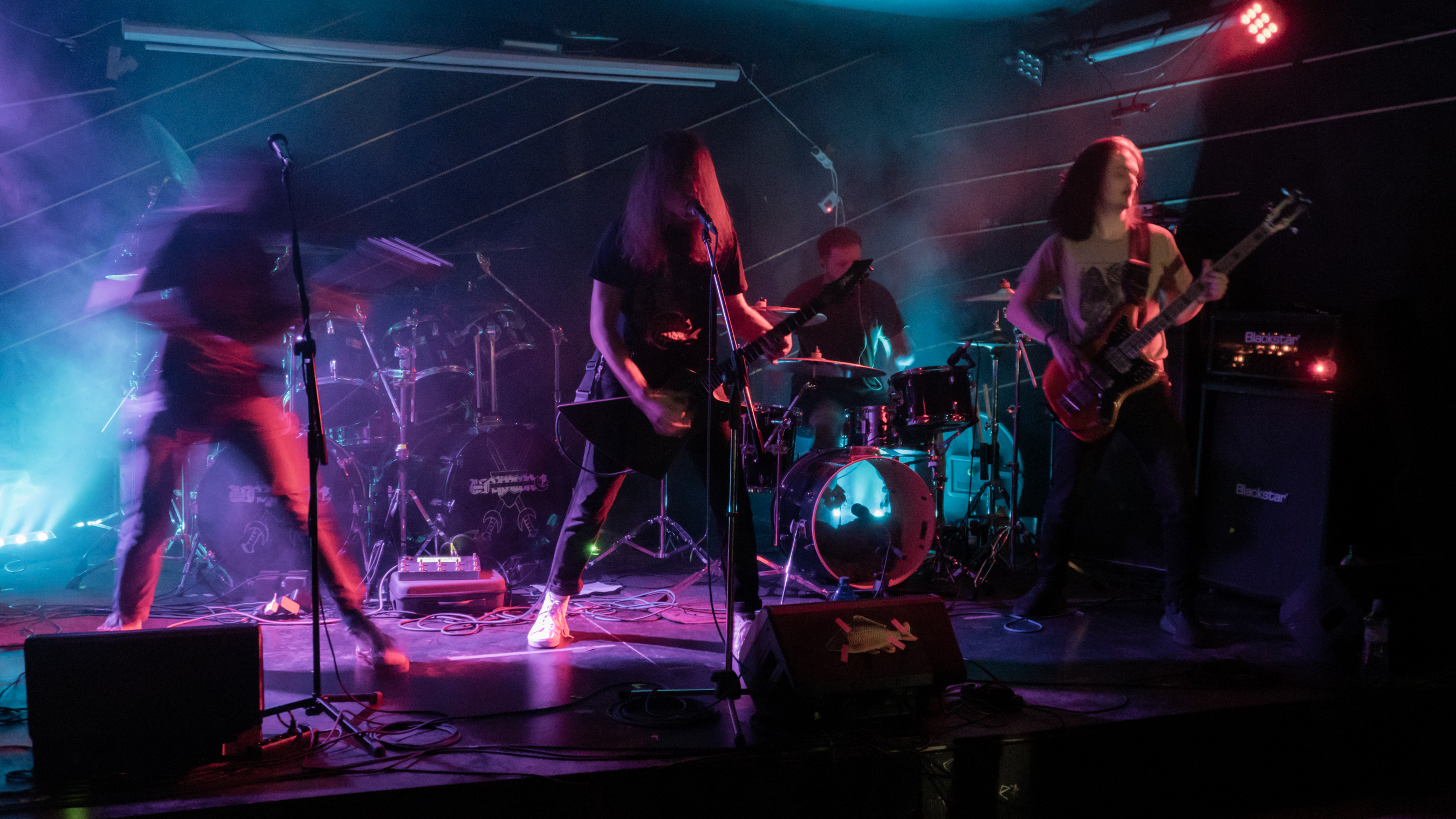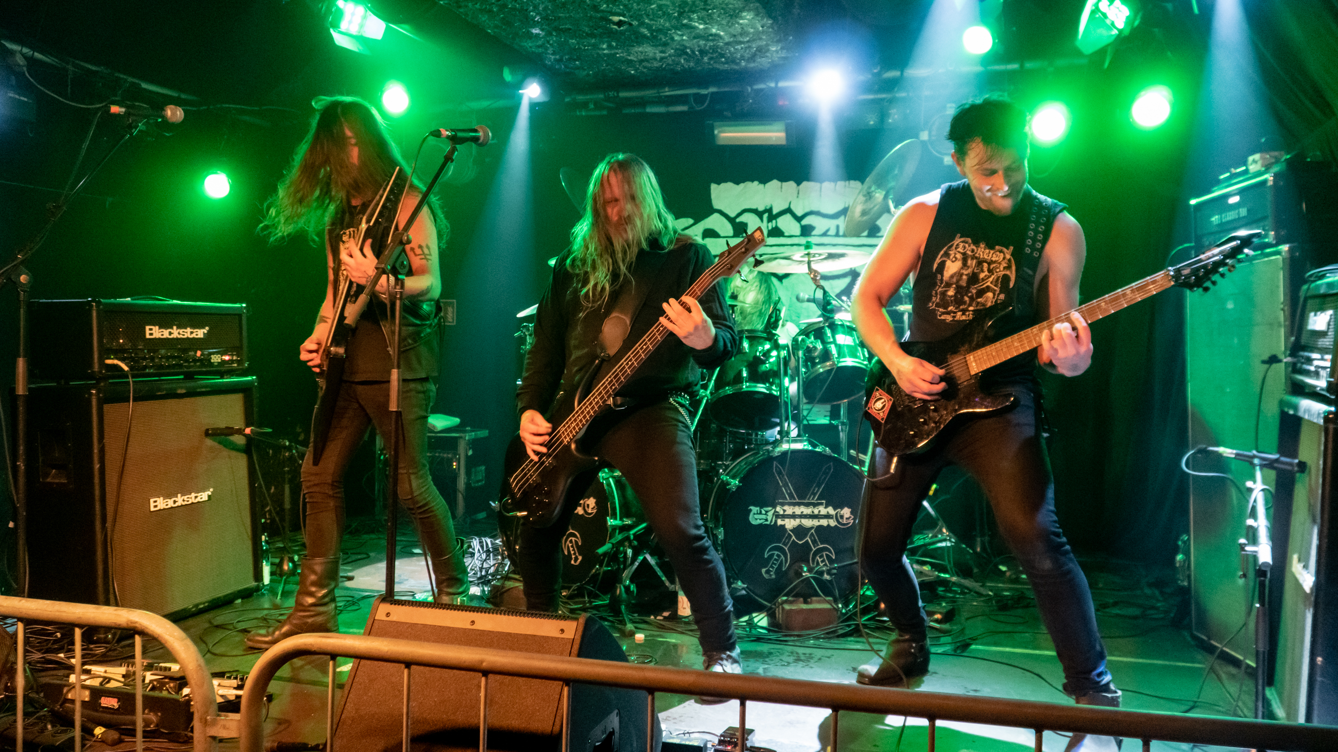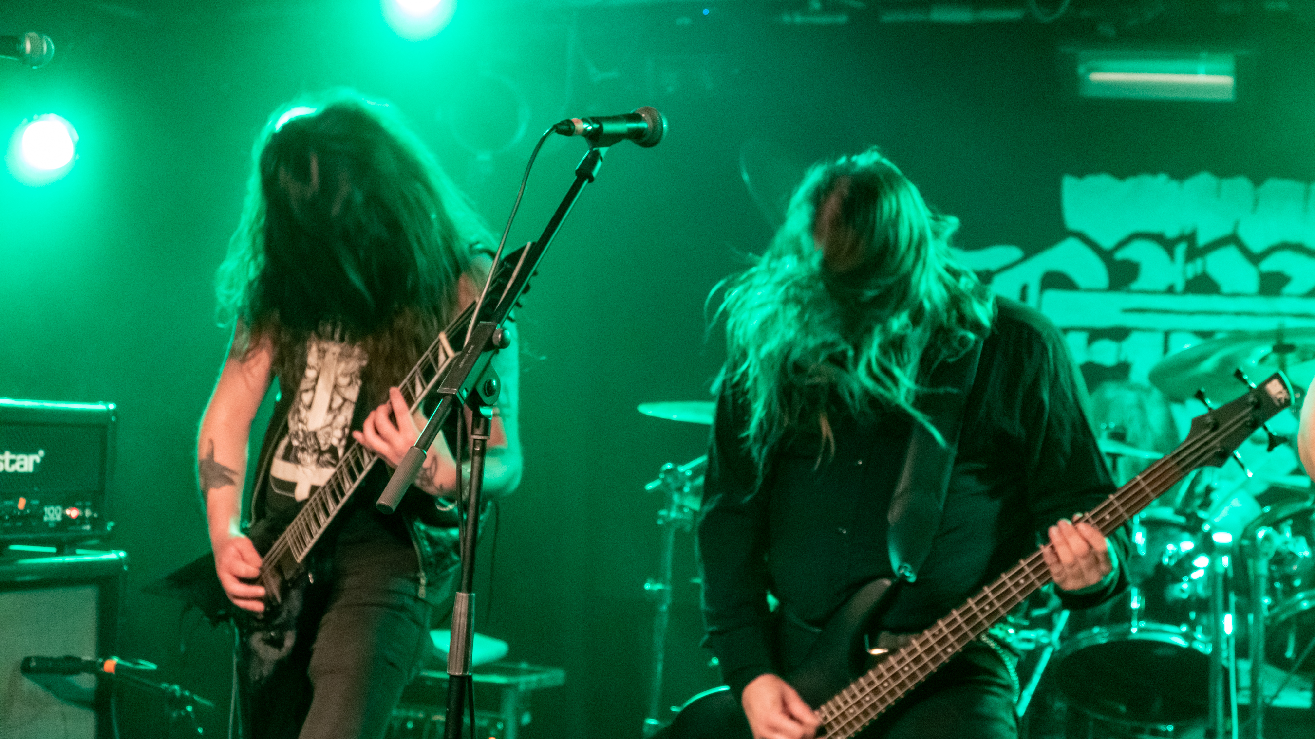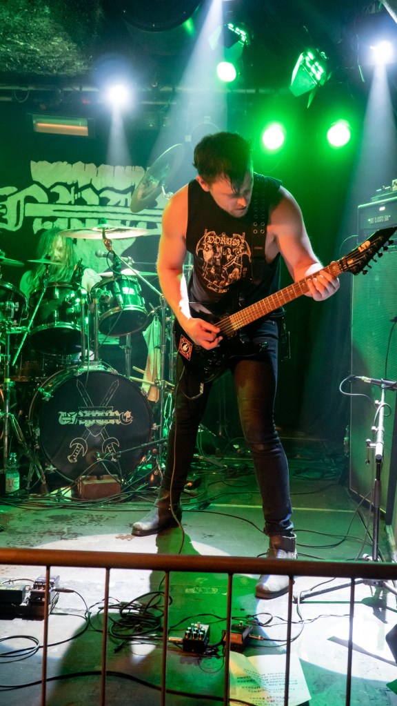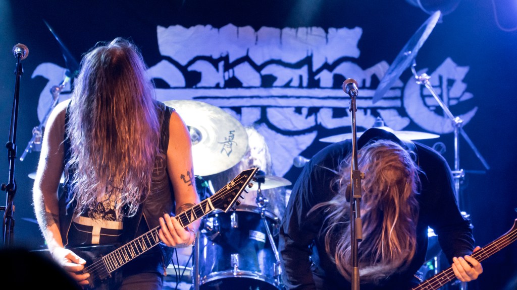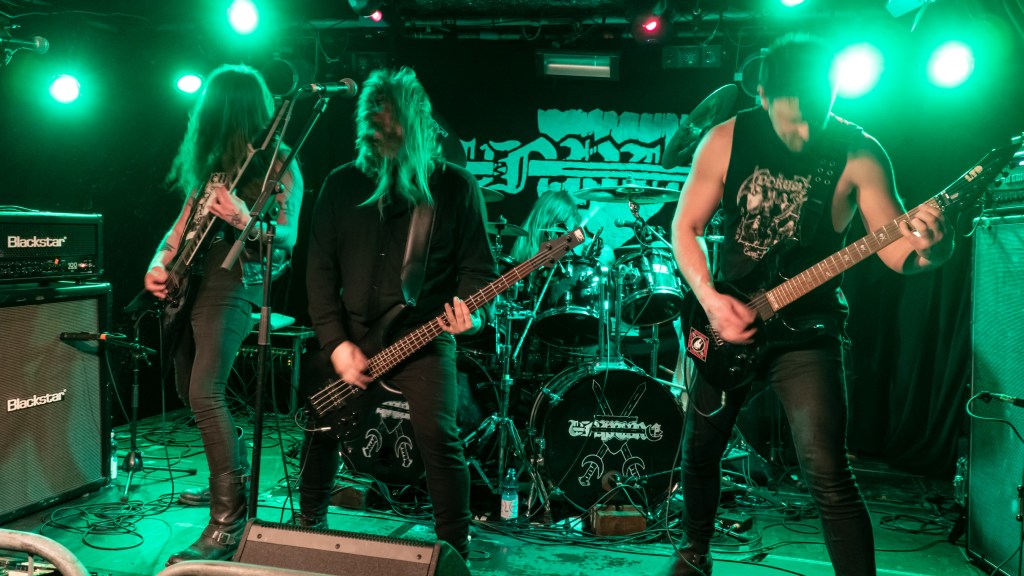 After their short Eastern European tour they did last year, Xalpen enrolled Gia as a permanent member in their ranks, so it was no surprise seeing her again shredding the guitar with that specific look on her face. She is really a great addition to the band, as the 2 guitars complement each other perfectly and bring a much needed heaviness and balance to the Xalpen songs. Behind the drums, hidden in the smoke and fog, Claudio massacred his kit and pounded like a maniac all throughout the show. Unfortunately the sound guy could not solve the sound issue during Xalpen‘s show, so they also had the same buzzing sound I mentioned earlier, but that did not prevent them to play with even more force and vigor. Alvaro and JP make a great duo, their vocals complement each other perfectly in a frightening unison.