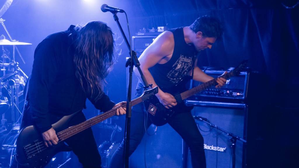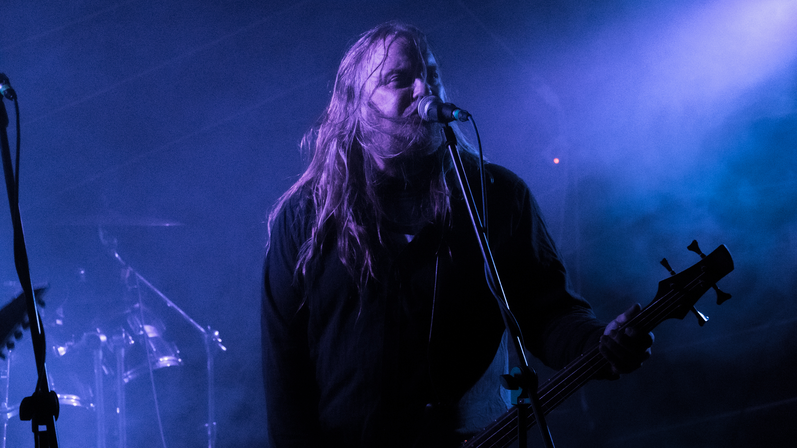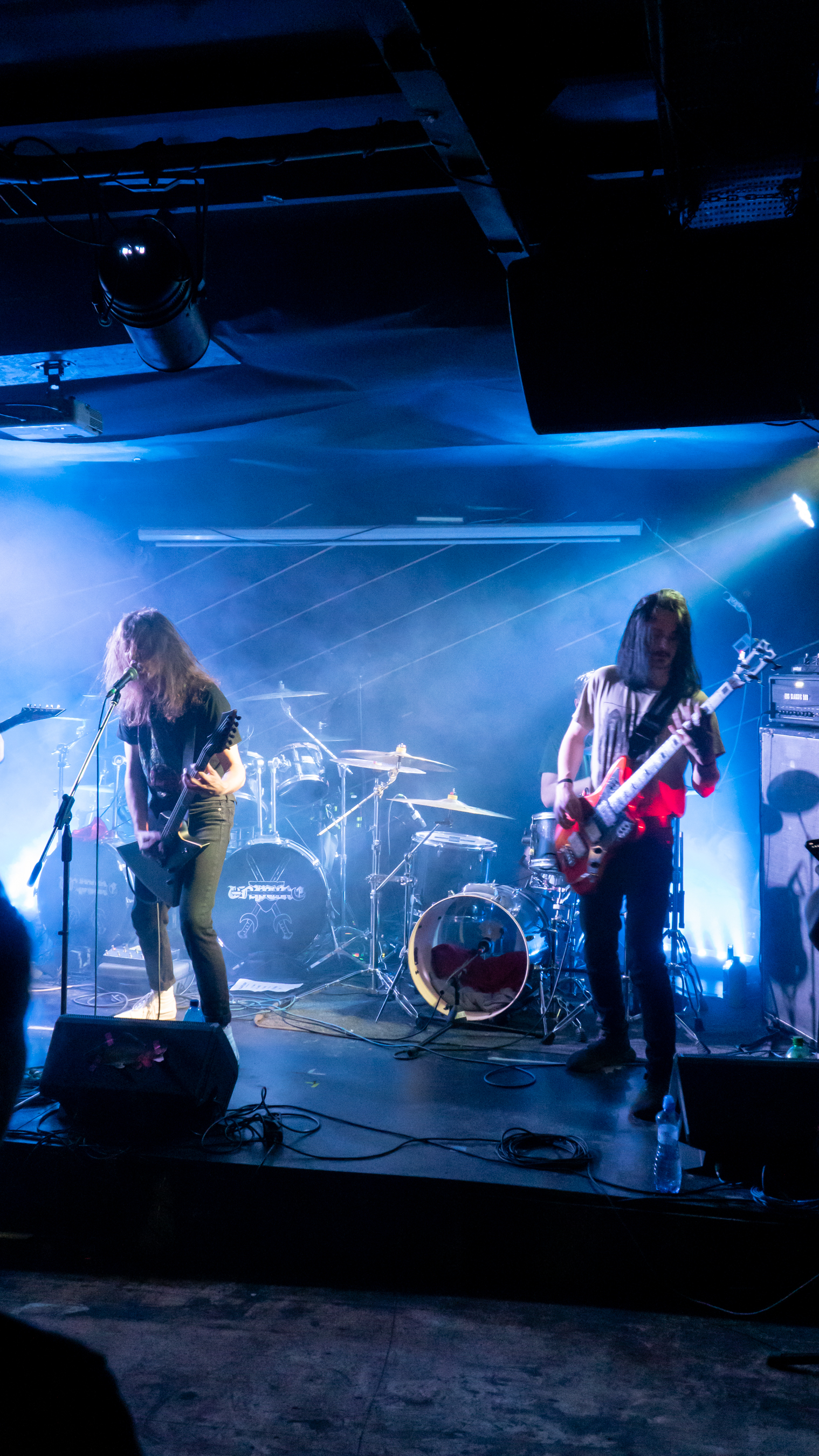 Alvaro communicated more in between the songs, establishing an invisible connection between the band on stage and the small but enthusiastic audience in the venue. Timid at first, those gathered in Viper Room rewarded the band with shouts and applauses after each track, opening their bodies and minds to the black fumes of Xalpen‘s music. The impending feeling of something dangerous about to happen was floating in the hall and was enhanced by the primal aesthetics of Alvaro and JP, who looked like some possessed acolytes of a forbidden cult. The 4 musicians felt and lived every moment of the show, fiercely headbanging and using their music to incite the audience to liberate themselves and become one with the spirits invoked on stage.