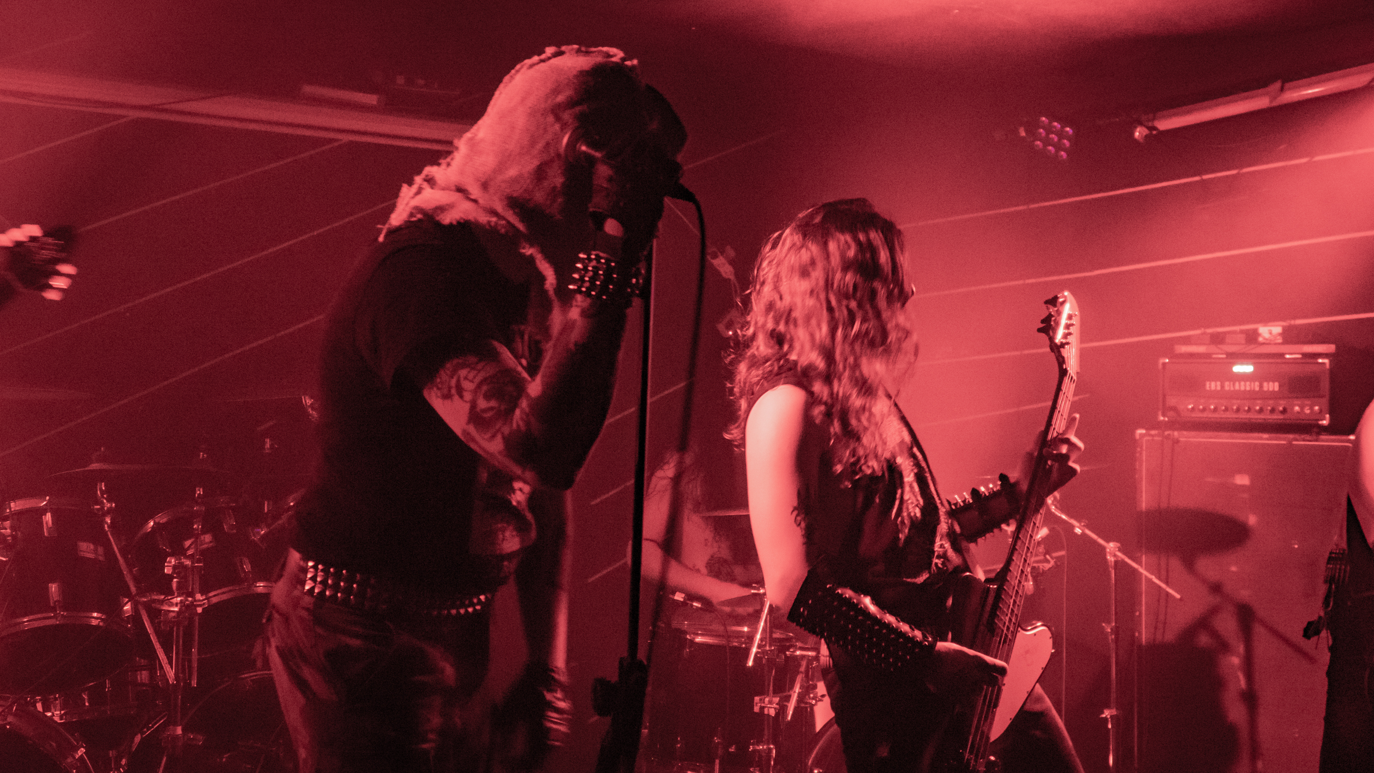 Next on the bill was Otras, a band who seems to be quite popular among the local fans, at least according to the audience’s reaction. They did their sound check on the spot too, so we had to wait for another half an hour or so before their show started. Otras plays some black metal with a lot of punk influences and their music is quite energetic. Even though I am not a fan of such a style, I kind of enjoyed their performance, despite some sound issues they had along the way. The vocalist has a disturbing appearance (he sings with a sack on his face) which suits the music, but apart from that I was not too moved by what I heard.