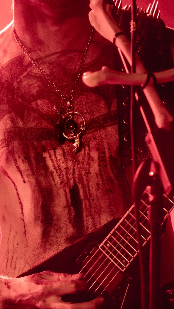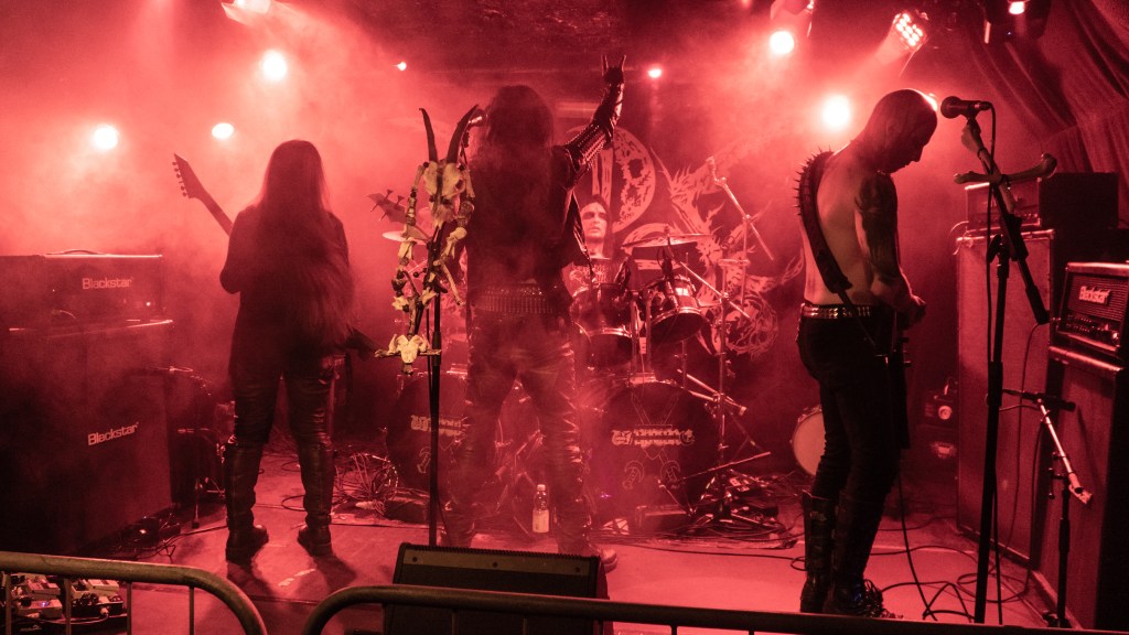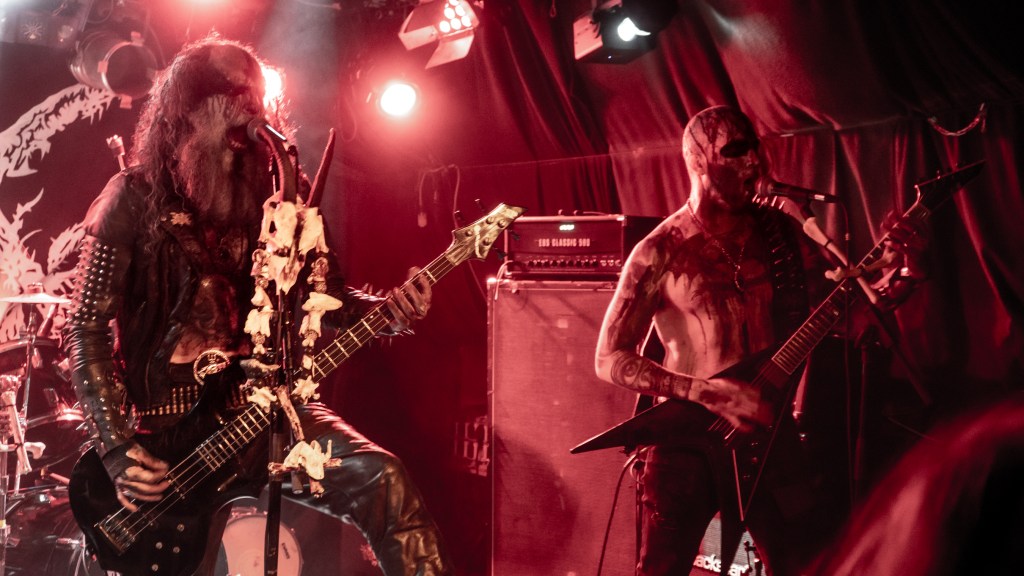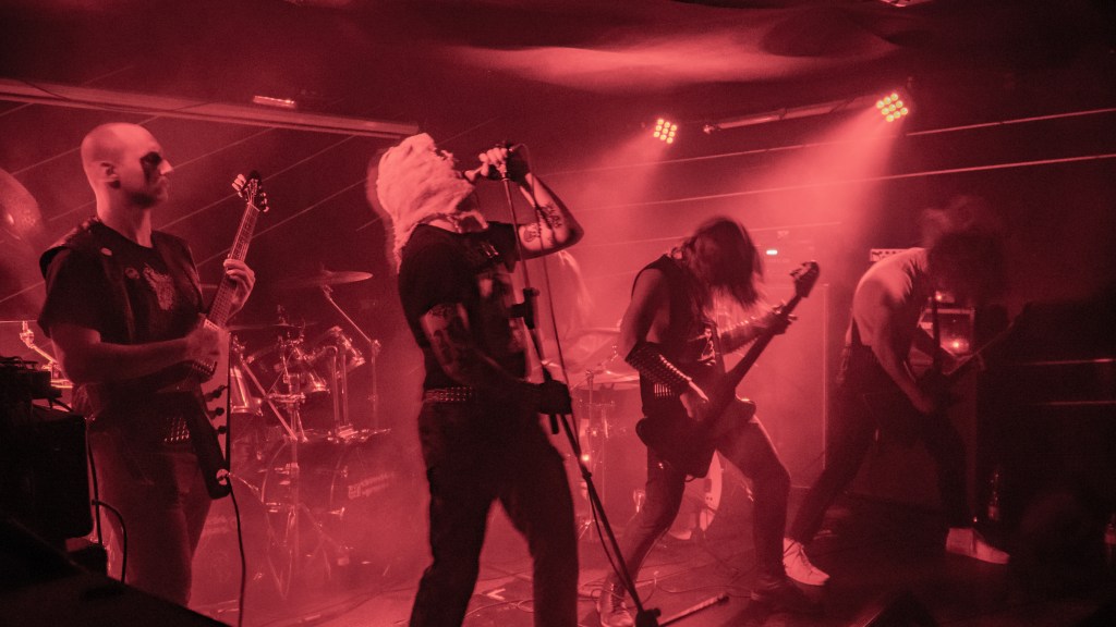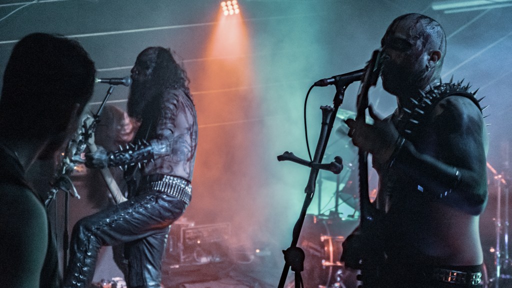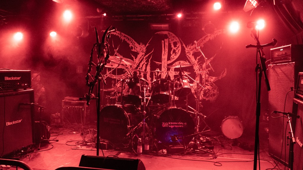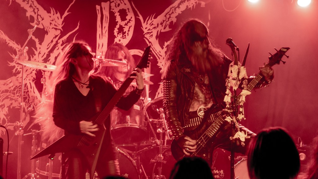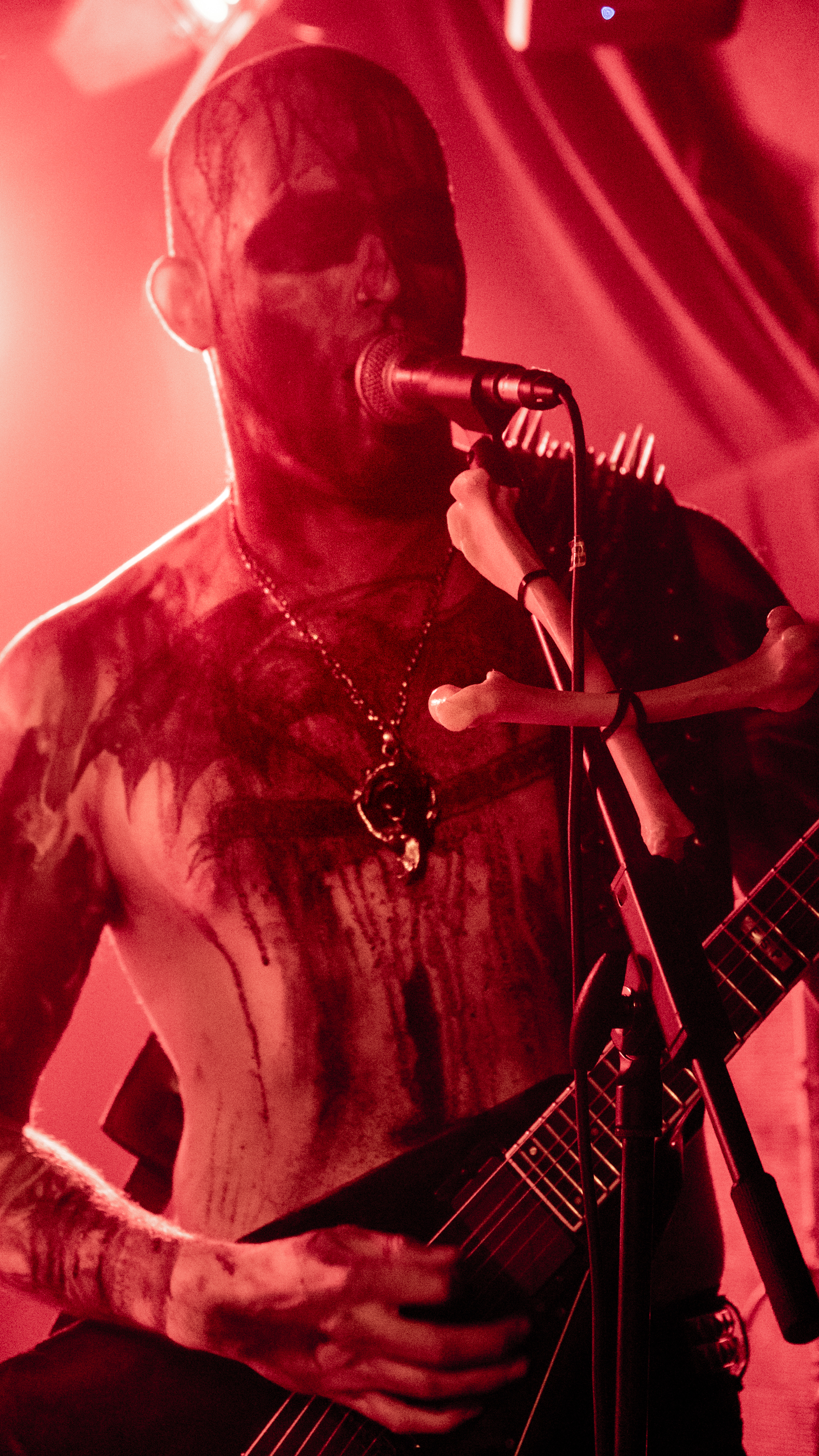 Last change over and sound check for the day and the lights went dim, while a creepy shamanic music poured out from the speakers. Covered in blood and corpsepaint, the 4 Chilean maniacs from Xalpen came on the stage and attacked the audience (fewer in number than before) with the first track of the evening, “Kòlpèwsh“. The band unleashed all its force on stage, and during the show, dark energies enveloped the small venue and those present. It’s incredible to watch Alvaro and JP spewing forth their lyrics into the microphone, transforming into some otherworldly beings, completely different than the persons you talked to earlier at the merch stand.