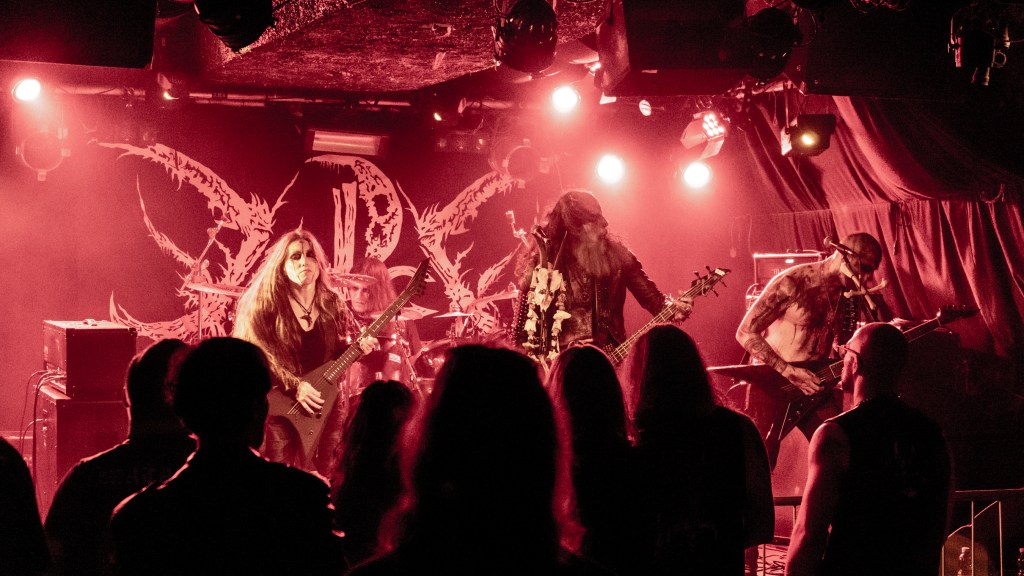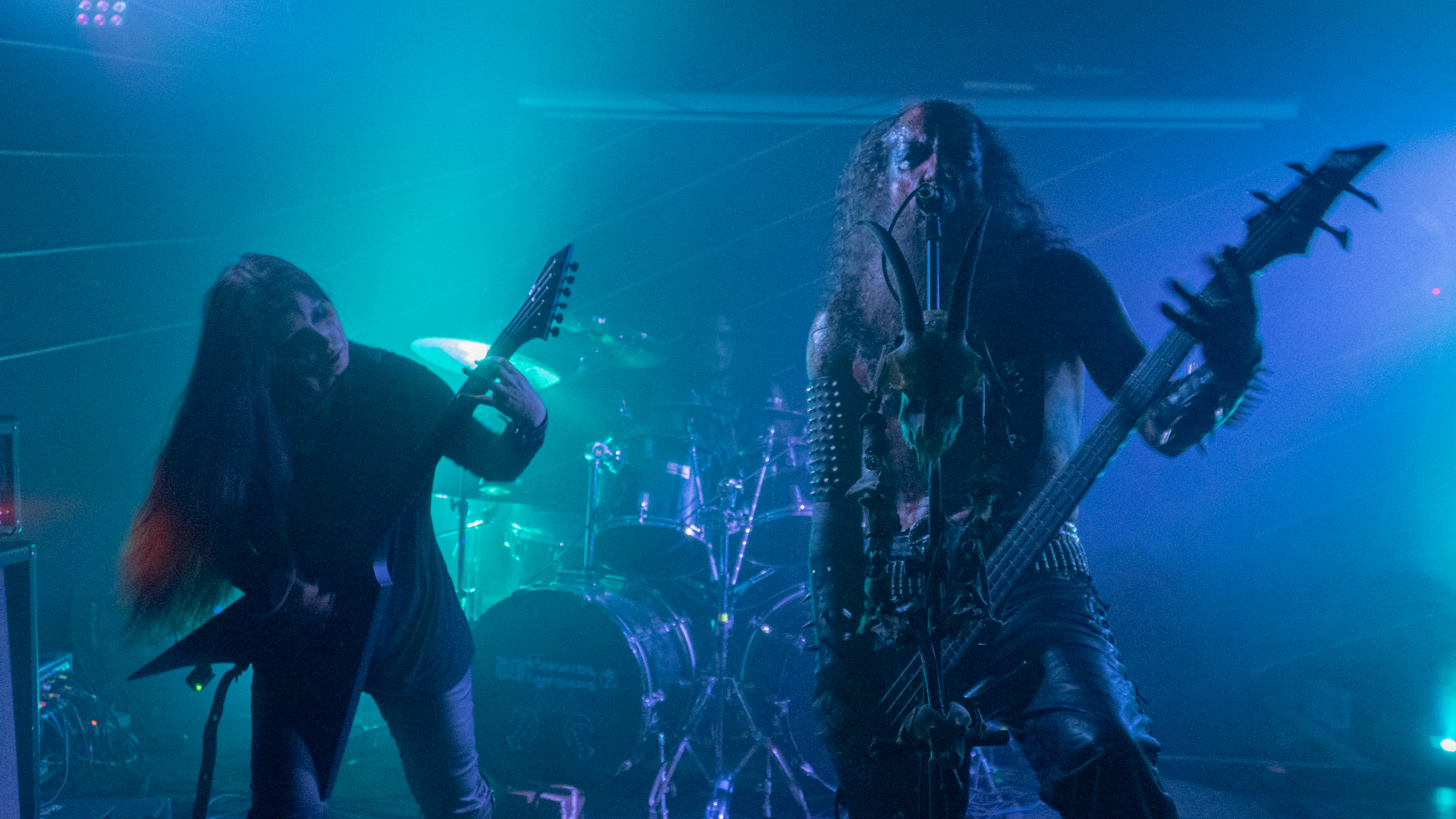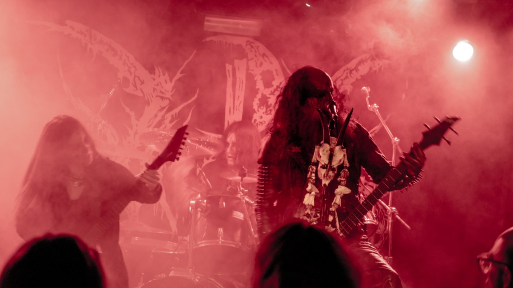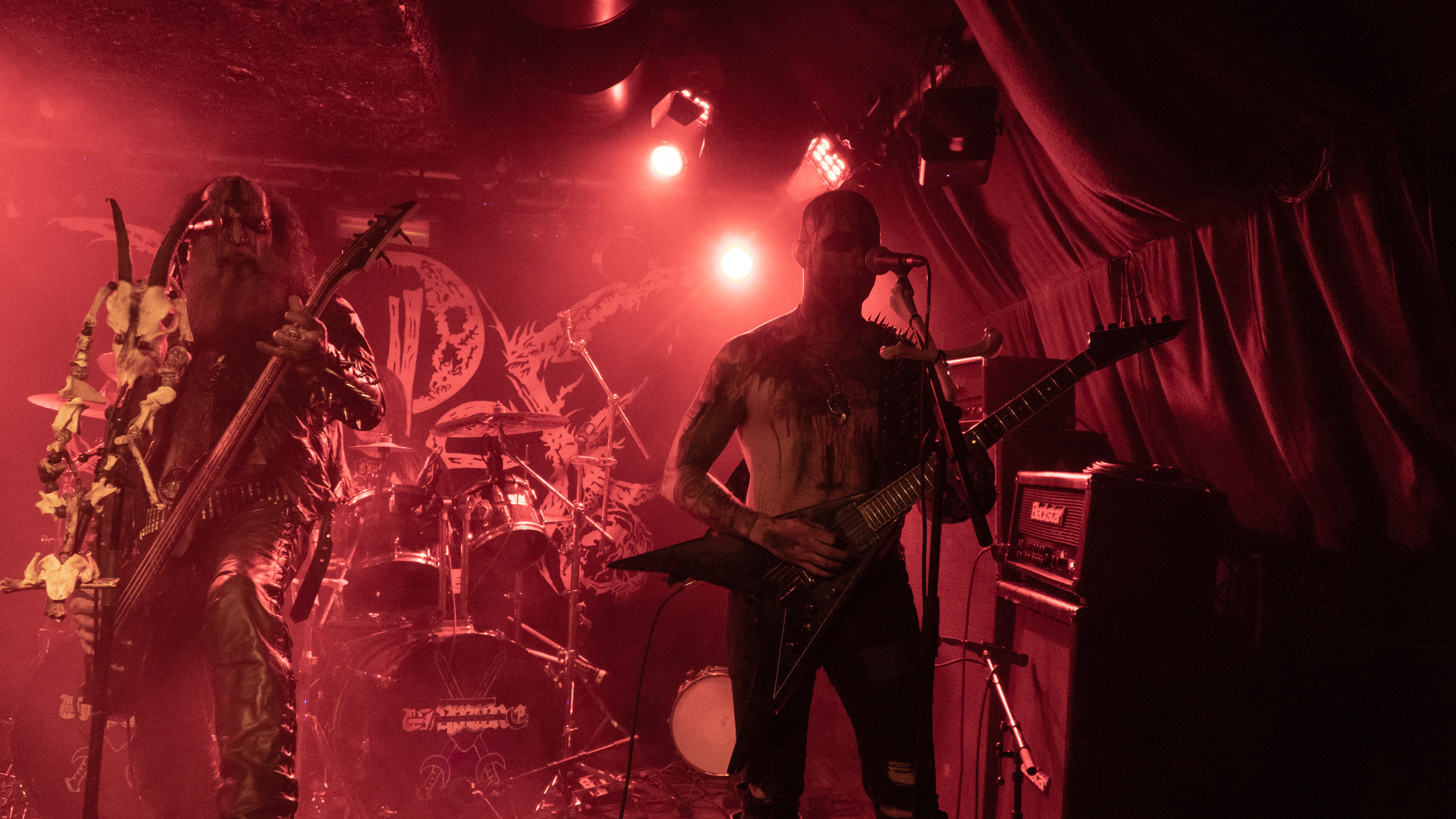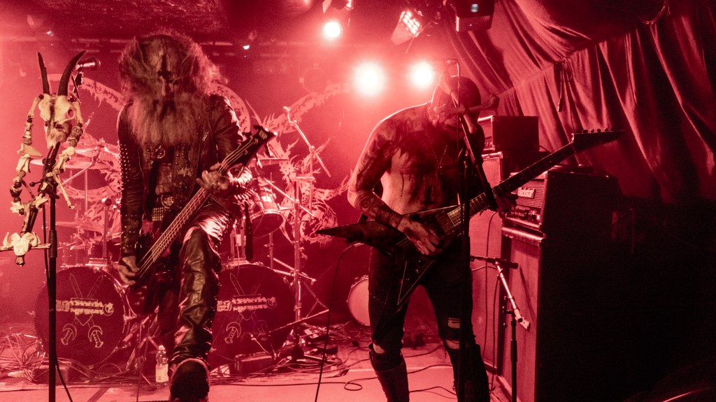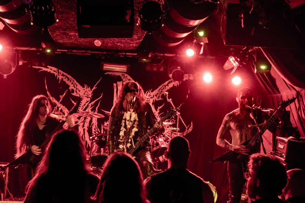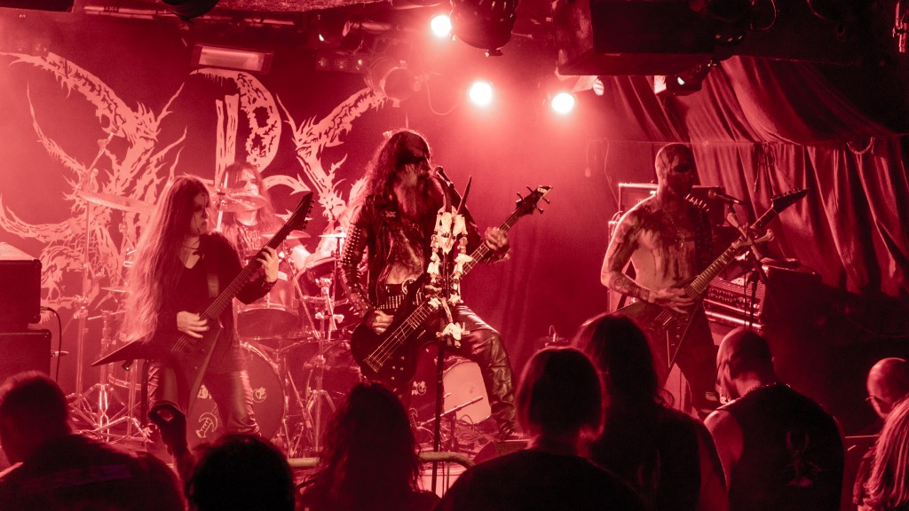 Last change over and sound check for the day and the lights went dim, while a creepy shamanic music poured out from the speakers. Covered in blood and corpsepaint, the 4 Chilean maniacs from Xalpen came on the stage and attacked the audience (fewer in number than before) with the first track of the evening, “Kòlpèwsh“. The band unleashed all its force on stage, and during the show, dark energies enveloped the small venue and those present. It’s incredible to watch Alvaro and JP spewing forth their lyrics into the microphone, transforming into some otherworldly beings, completely different than the persons you talked to earlier at the merch stand.