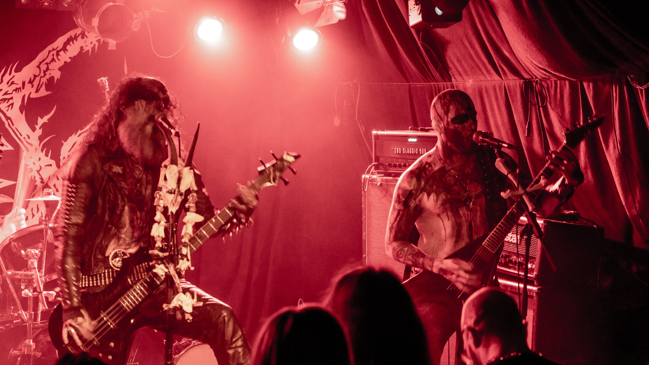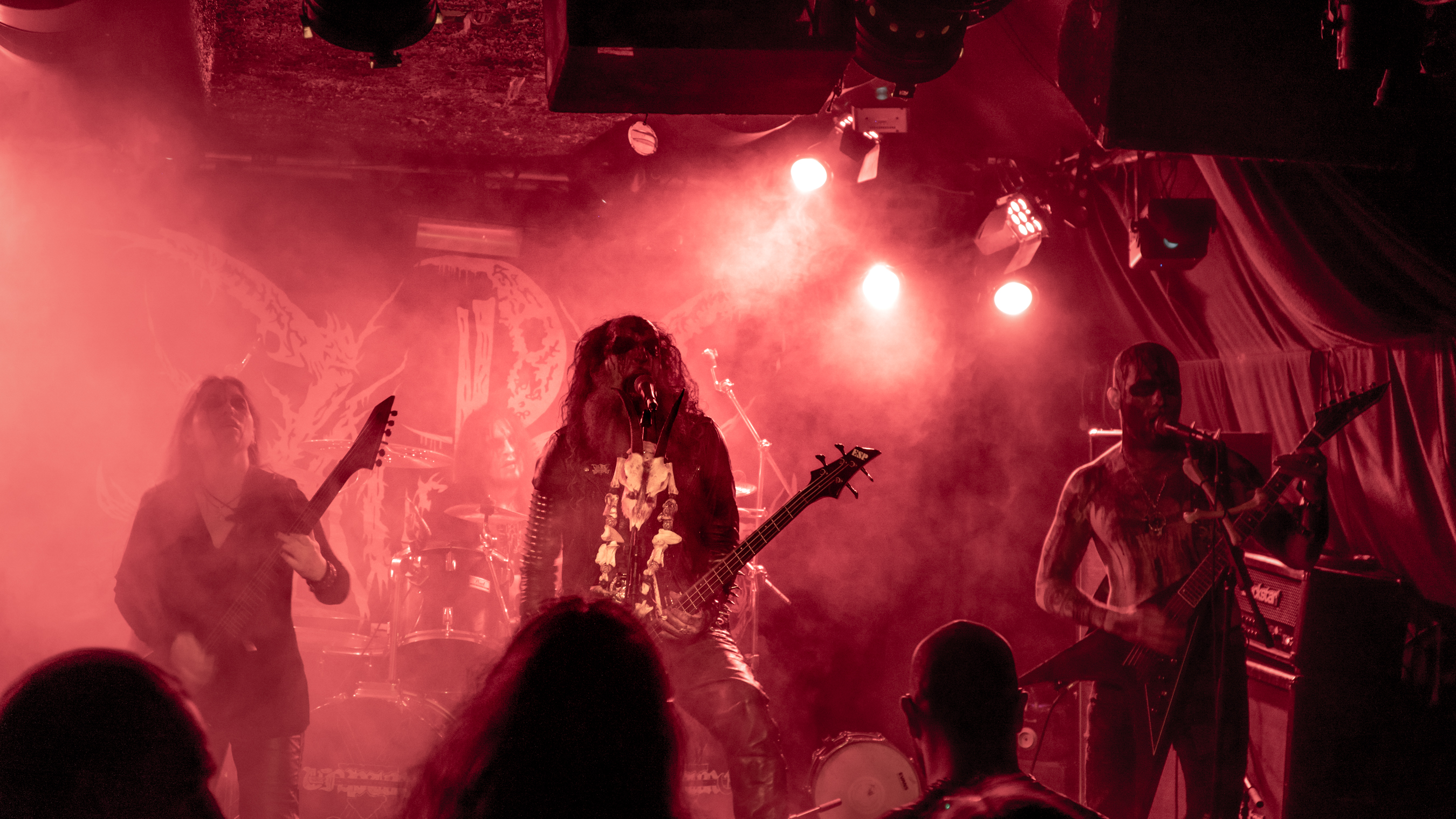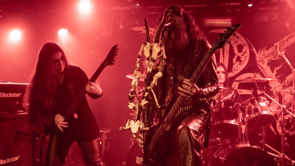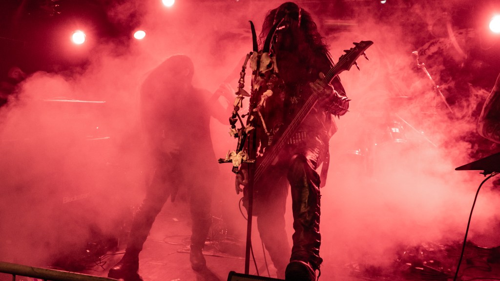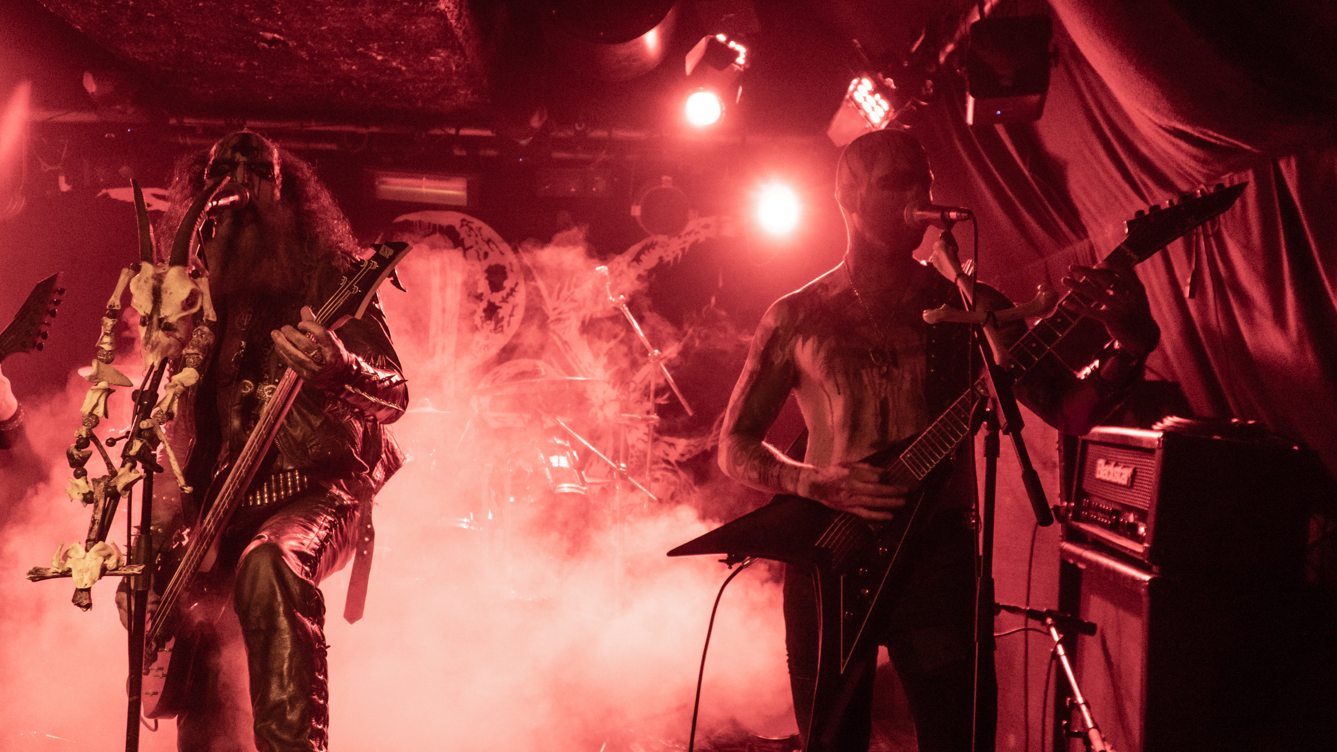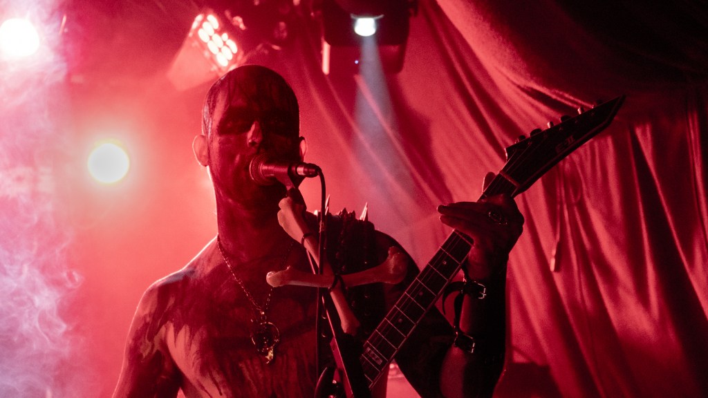 Last change over and sound check for the day and the lights went dim, while a creepy shamanic music poured out from the speakers. Covered in blood and corpsepaint, the 4 Chilean maniacs from Xalpen came on the stage and attacked the audience (fewer in number than before) with the first track of the evening, “Kòlpèwsh“. The band unleashed all its force on stage, and during the show, dark energies enveloped the small venue and those present. It’s incredible to watch Alvaro and JP spewing forth their lyrics into the microphone, transforming into some otherworldly beings, completely different than the persons you talked to earlier at the merch stand.