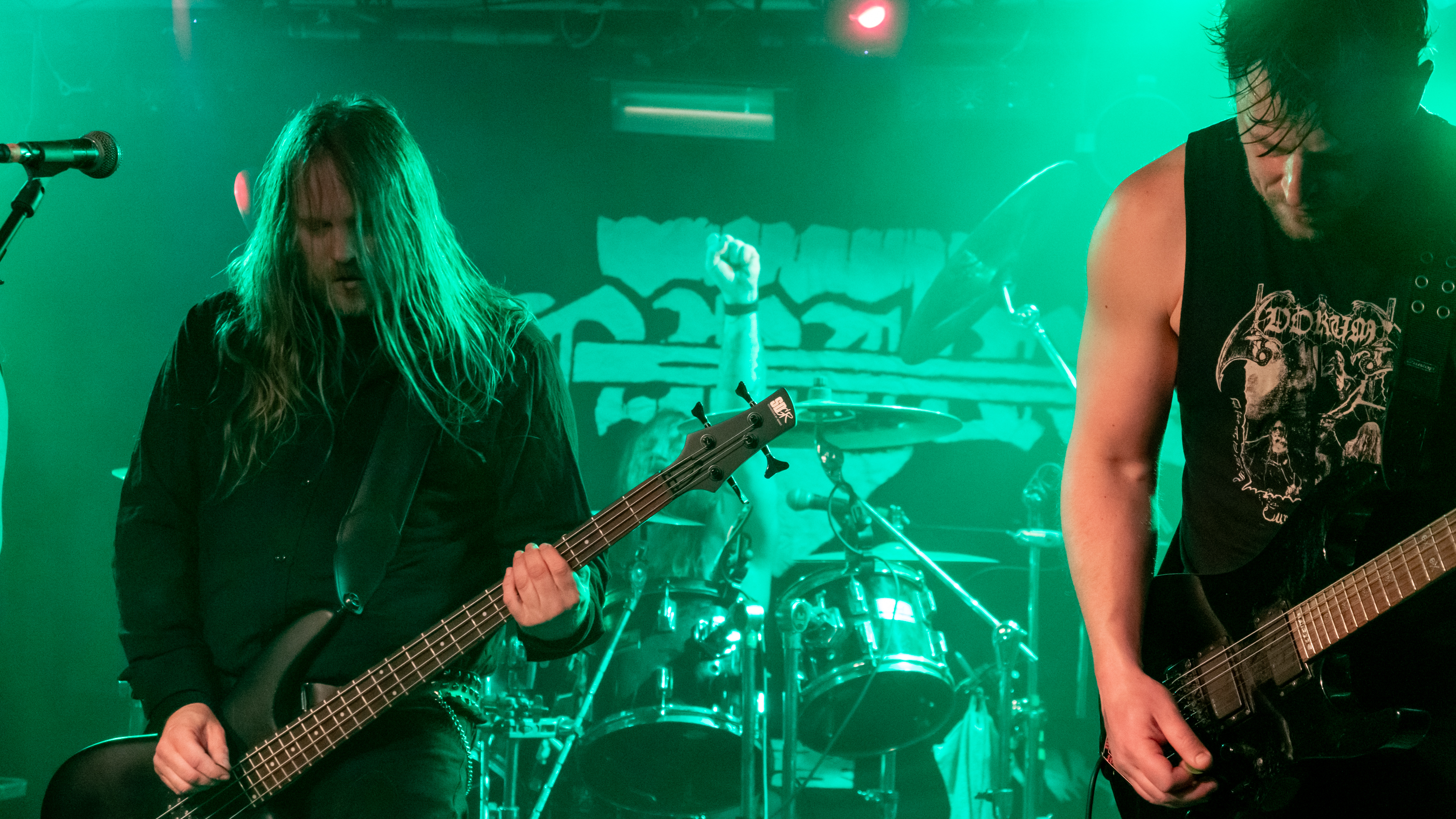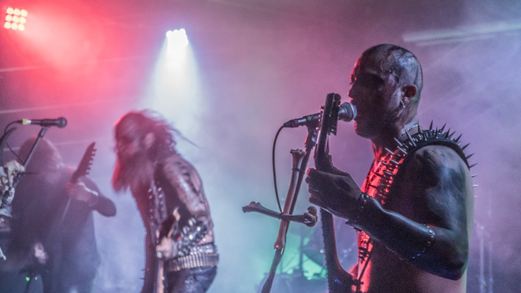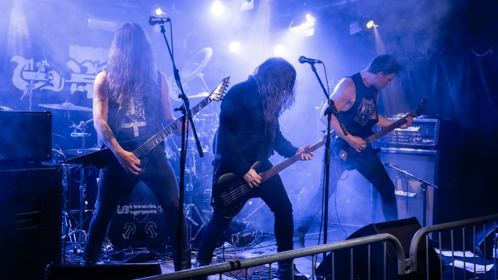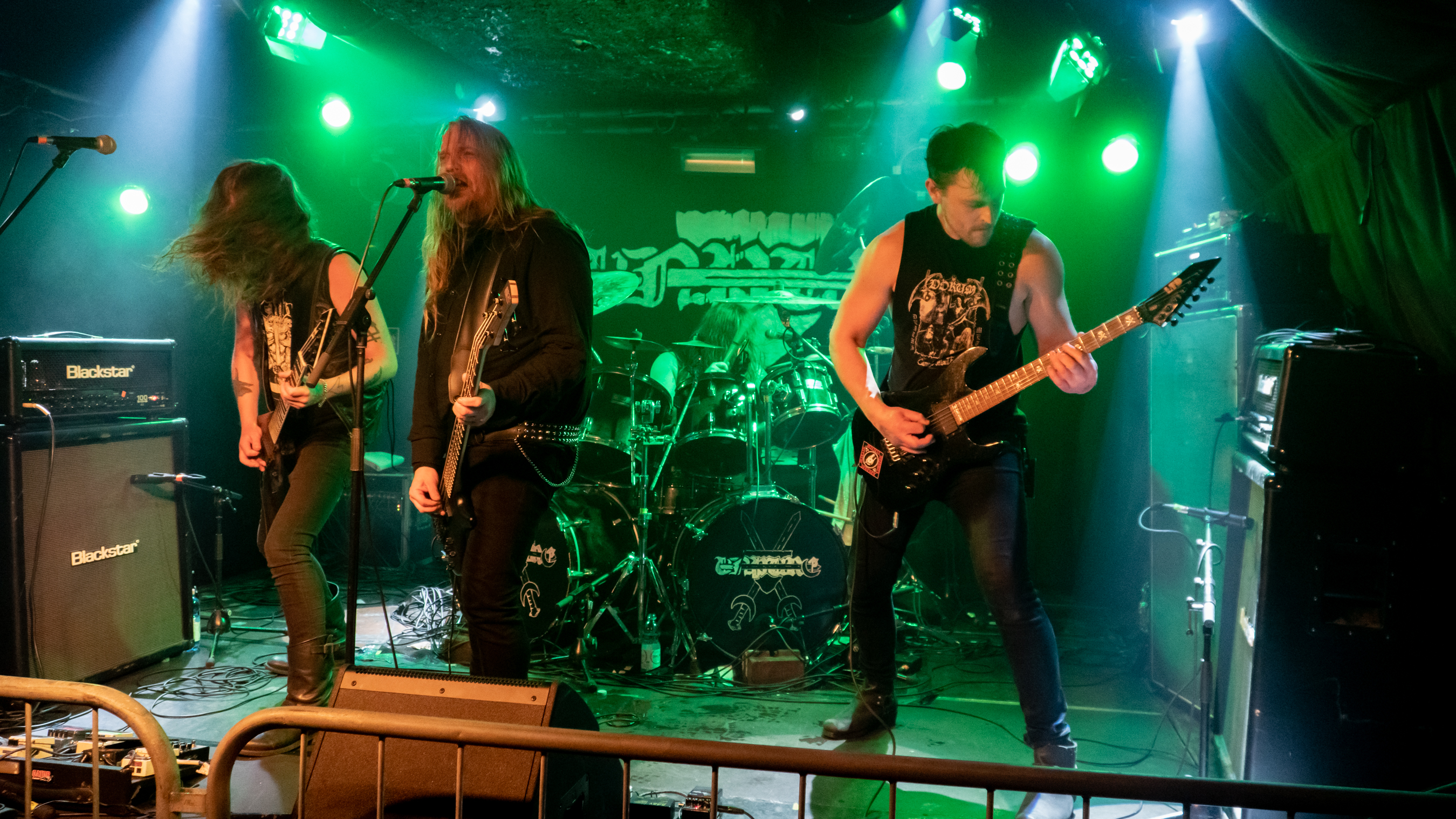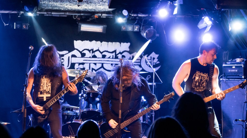 After Otras‘s show and a well deserved change over and sound check, it was time for one of the bands I went there for: the legendary Unpure took the small stage and started their performance with “Megalithic Gateways” and “Northern Sea Madness“, the first 2 songs from their recent album, “Prophecies Ablaze“. I was in the front row and the sound was shitty as fuck, everything was fuzzy and chaotic. At some point during the show Hampus tried to sing on “A Forest Event” but his voice was completely inaudible, nothing came out of the microphone. The band played on, but it was an awkward moment which spoiled this great old track. I was hoping that the sound guy will do something quick to fix the issue, but he didn’t sweat too much about it. Nevertheless, seeing the mighty Kolgrim and Co. delivering the goods in such a glorious way was pure pleasure. I was ecstatic hearing old tracks like “To the Ancients“, “A Forest Event“, “Surrounded by Darkness“, “Count Dracula” or “Forever Lust” along with newer tracks from the recent LP, like “The Witch of Upsala“, “Prophecies Ablaze“, “Beyond the Nightmares” or “Endtime Dictator“. Due to Pelle‘s last minute withdrawal just before the start of the tour, Unpure recruited Matti Jalava (ex Vorum – nice “Current Mouth” shirt man!) on second guitar. He did a very good job on the songs and together with the other guys he was able to sort it out in a professional manner. Useless to say that Emil‘s insane drumming gives the band a dizzying speed which they were never able to attain before.