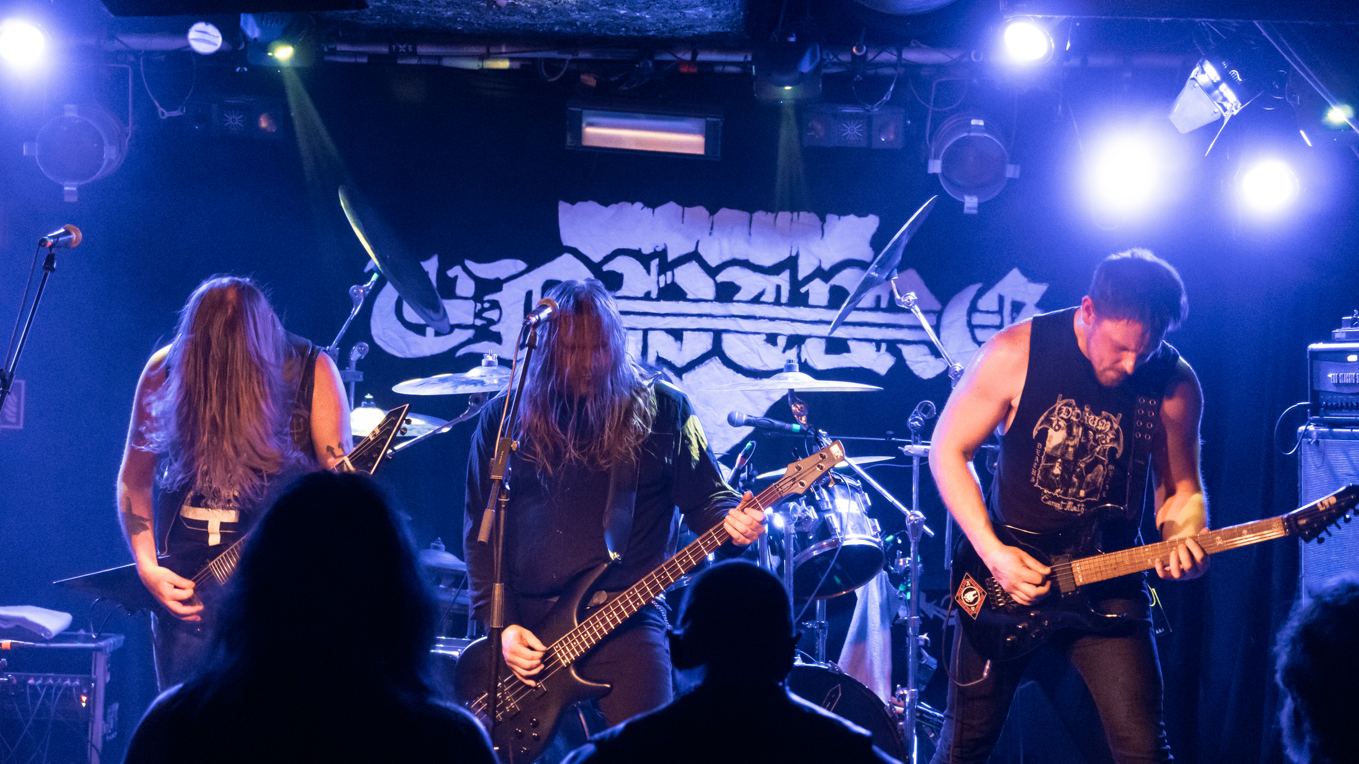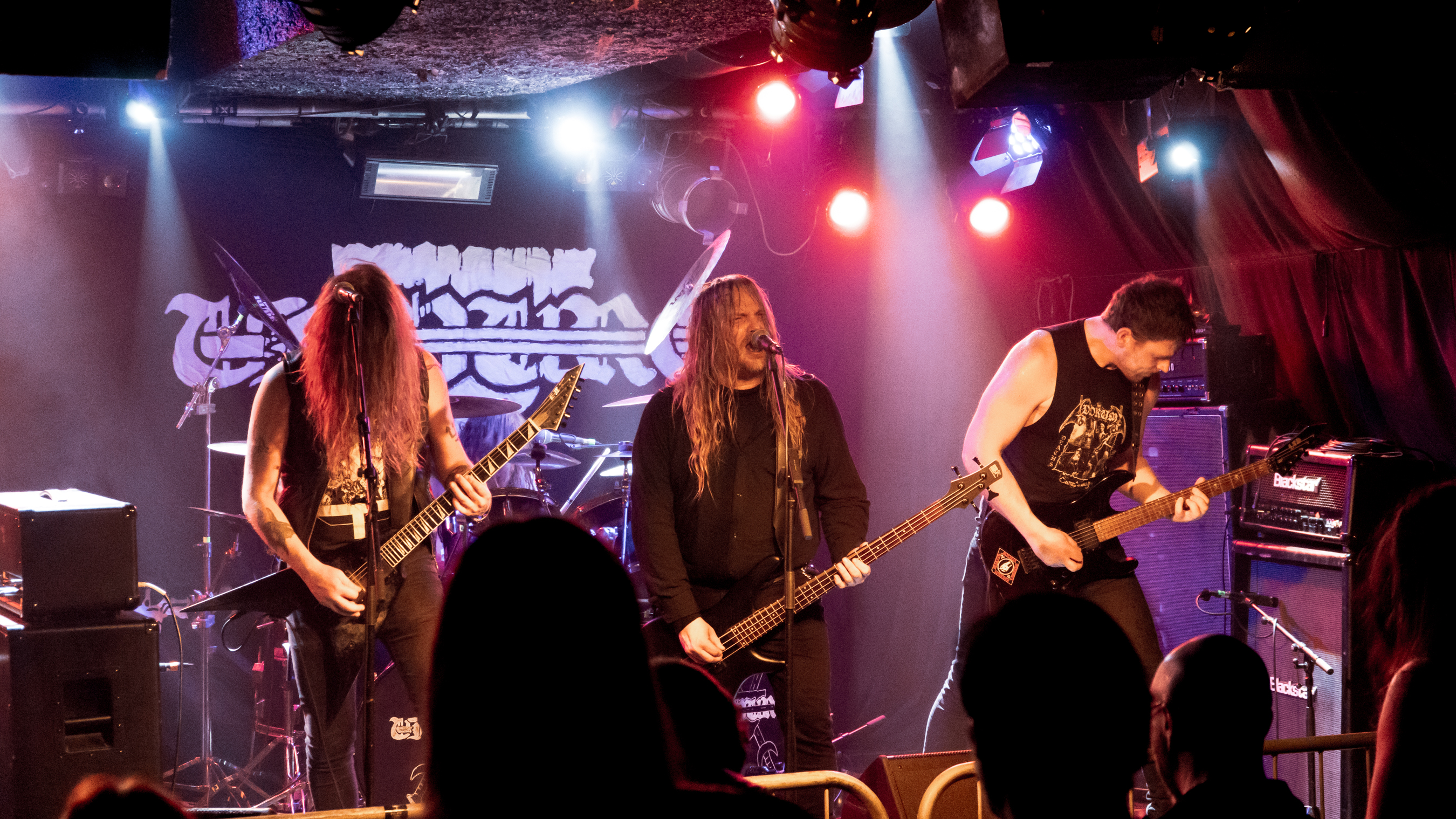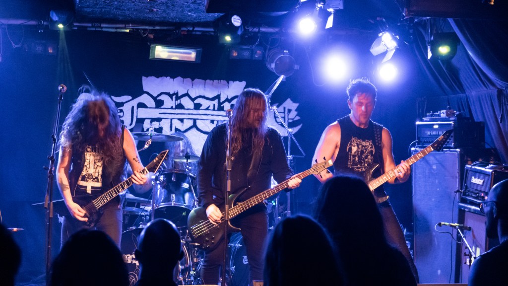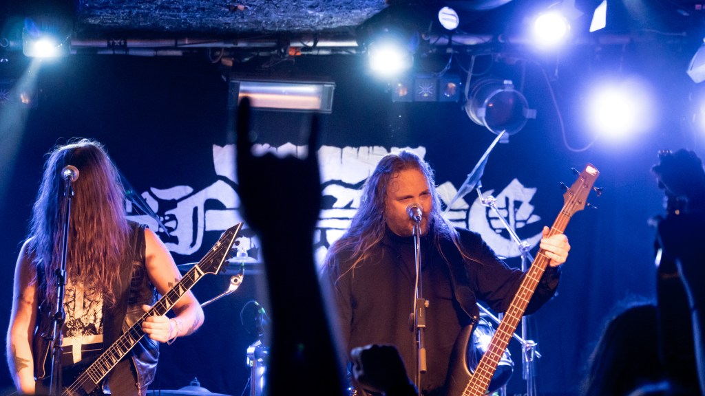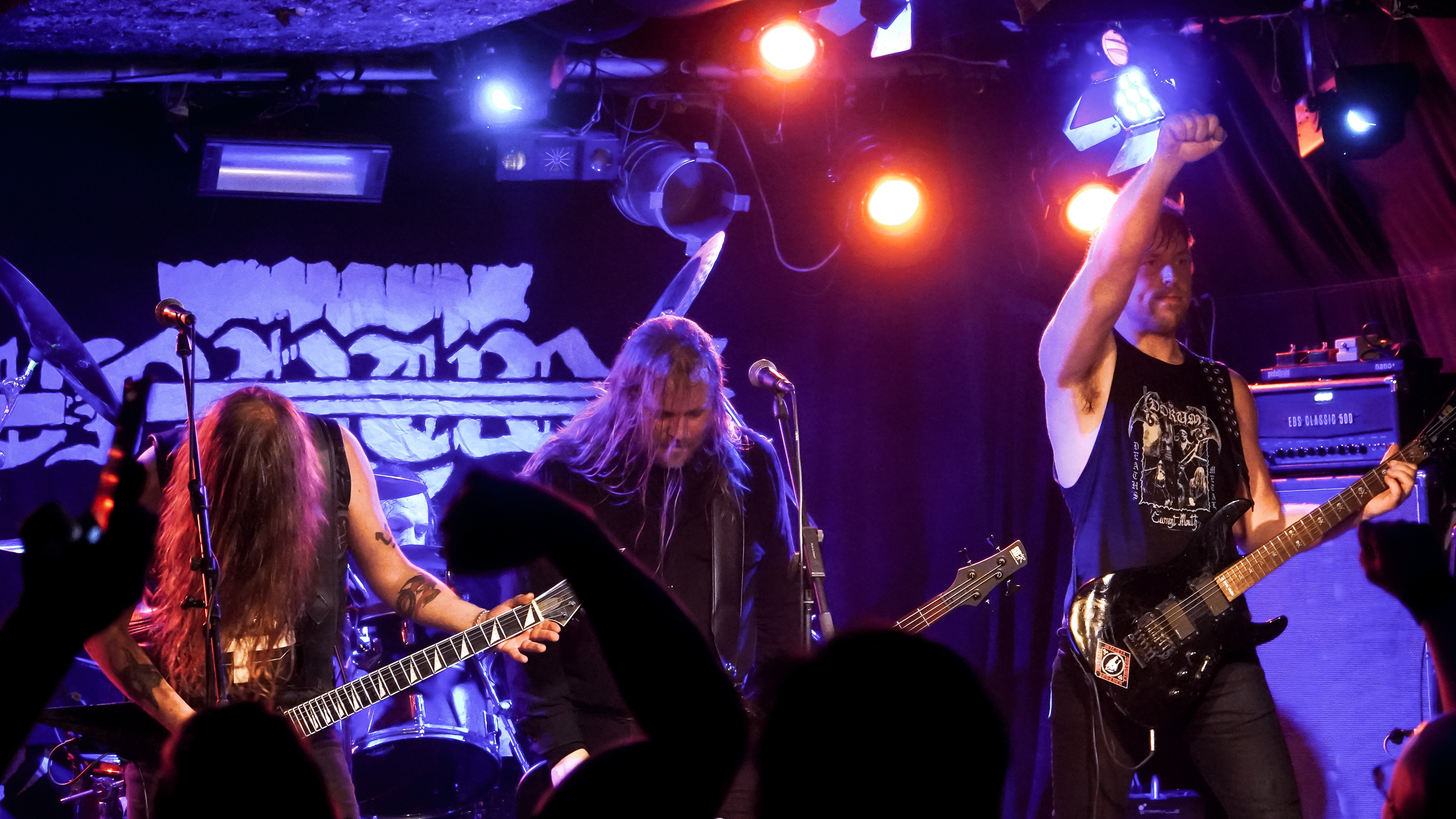 After Otras‘s show and a well deserved change over and sound check, it was time for one of the bands I went there for: the legendary Unpure took the small stage and started their performance with “Megalithic Gateways” and “Northern Sea Madness“, the first 2 songs from their recent album, “Prophecies Ablaze“. I was in the front row and the sound was shitty as fuck, everything was fuzzy and chaotic. At some point during the show Hampus tried to sing on “A Forest Event” but his voice was completely inaudible, nothing came out of the microphone. The band played on, but it was an awkward moment which spoiled this great old track. I was hoping that the sound guy will do something quick to fix the issue, but he didn’t sweat too much about it. Nevertheless, seeing the mighty Kolgrim and Co. delivering the goods in such a glorious way was pure pleasure. I was ecstatic hearing old tracks like “To the Ancients“, “A Forest Event“, “Surrounded by Darkness“, “Count Dracula” or “Forever Lust” along with newer tracks from the recent LP, like “The Witch of Upsala“, “Prophecies Ablaze“, “Beyond the Nightmares” or “Endtime Dictator“. Due to Pelle‘s last minute withdrawal just before the start of the tour, Unpure recruited Matti Jalava (ex Vorum – nice “Current Mouth” shirt man!) on second guitar. He did a very good job on the songs and together with the other guys he was able to sort it out in a professional manner. Useless to say that Emil‘s insane drumming gives the band a dizzying speed which they were never able to attain before.